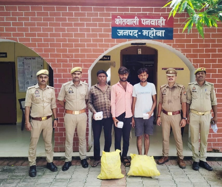 टीम के वरिष्ठ उपनिरीक्षक महेन्द्र कुमार वर्मा मय जनपदीय एसओजी पुलिस टीम द्वारा ग्राम आफतपुरा के पास से 03 अभियुक्तगण संदीप राजपूत ,धर्मेन्द्र राजपूत ,निखिल राजपूत को नियमानुसार गिरफ्तार किया गया। गिरफ्तार अभियुक्तों के कब्जे से थाना पनवाड़ी पर पंजीकृत मु0अ0सं0 148/2025 धारा 331(2)/305(ए) बीएनएस से सम्बन्धित 191 देशी शराब के पाउच व नकद 20,000/- रूपये सहित घटना में प्रयुक्त 01 चार पहिया वाहन बरामद किया गया, जिसको अन्तर्गत धारा 207 एमबीएक्ट के तहत सीज किया गया। पूछताछ के दौरान अभियुक्तों द्वारा बताया गया कि उनके द्वारा थाना कोतवाली नगर व थाना श्रीनगर में भी चोरी की घटनाओं को अंजाम दिया गया था, जिसमें मु0अ0सं0 101/25 धारा 305 (A), 331(2), 324(4) बीएनएस थाना श्रीनगर जनपद महोबा से सम्बन्धित 5,600/- रूपये तथा मु0अ0सं0 550/24 धारा 305 बीएनएस थाना कोतवाली जनपद महोबा से सम्बन्धित 1,500/- रूपये बरामद हुआ। बरामद माल के आधार पर थाना पनवाड़ी पर पंजीकृत मु0अ0सं0- 148/2025 धारा 331(2)/305(ए) बीएनएस में धारा 317(2) बीएनएस की बढोत्तरी की गयी तथा गिरफ्तारशुदा अभियुक्तगण के विरूद्ध नियमानुसार कार्यवाही कर अभियुक्तो को न्यायालय के समक्ष पेशी हेतु भेजा गया ।