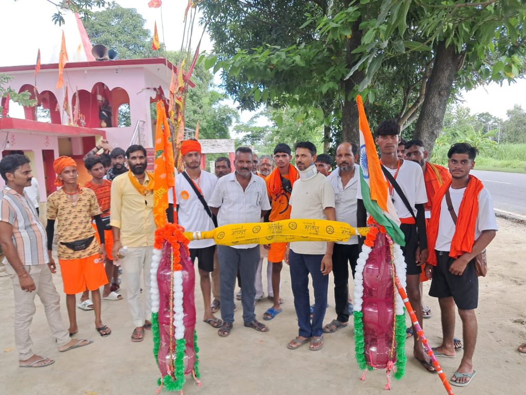 रिपोर्टर – उत्कर्ष गुप्ता निघासन खीरी-विशाल कावड़ पदयात्रा मे जा रहे हैं समस्त शिव भक्तों का नंदापुरवा से जारी कांवड़ यात्रा का पूर्व प्रधान रामपाल मौर्य के द्वारा सभी कांवरियों का तिलक वंदन कर मीठा खिलाकर शुभकामनाएं देते हुए रवाना किया। सभी कांवड़ यात्रियों की यात्रा मंगलमय हो ऐसी कामना के साथ छोटी काशी गोला गोकर्णनाथ धाम के लिए विशाल कावड़ पदयात्रा हुई रवाना। इस अवसर पर सैकड़ो भोलेनाथ के भक्त कांवरियों को विदा करने के लिए पहुंचे। इस शुभ अवसर आशीष गुप्ता छाजु, अमेरिका मौर्य,नंदकुमार यादव,रजनीश दीक्षित, विमलेश शुक्ला, ब्रह्मादीन पाल, लाल बहादुर सिंह, प्रधान सैकड़ो शिव भक्त एवं ग्रामवासी मौजूद रहे।