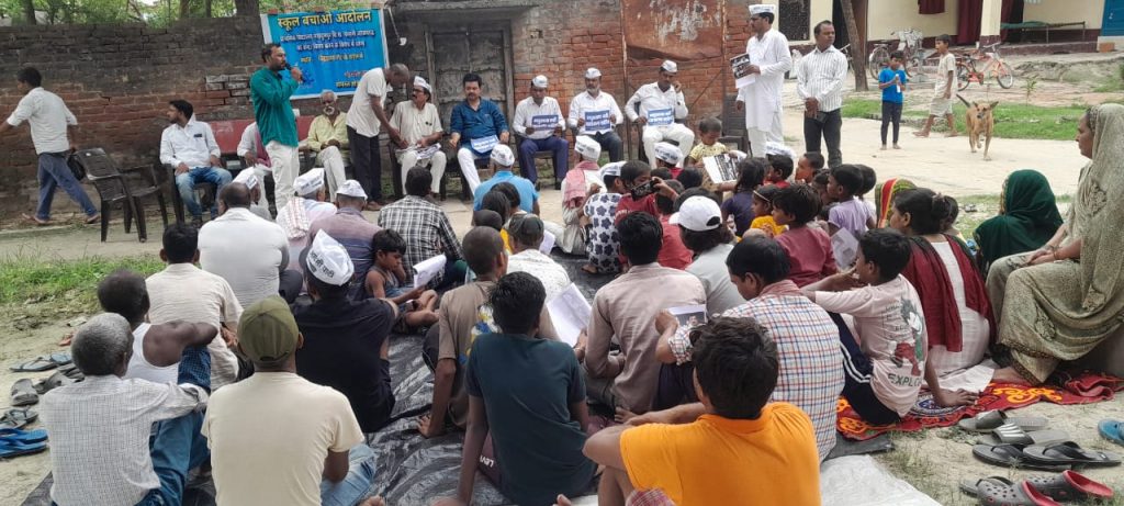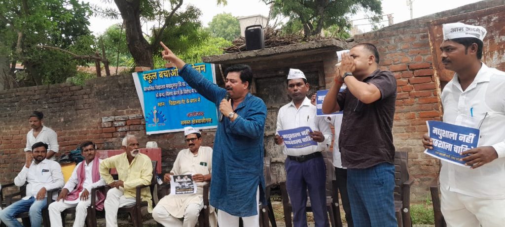 आप प्रदेश प्रभारी, सांसद संजय सिंह के आवाहन पर कार्यकर्ताओं ने सरकारी स्कूलों को बंद करने के खिलाफ किया प्रदेशव्यापी प्रदर्शन