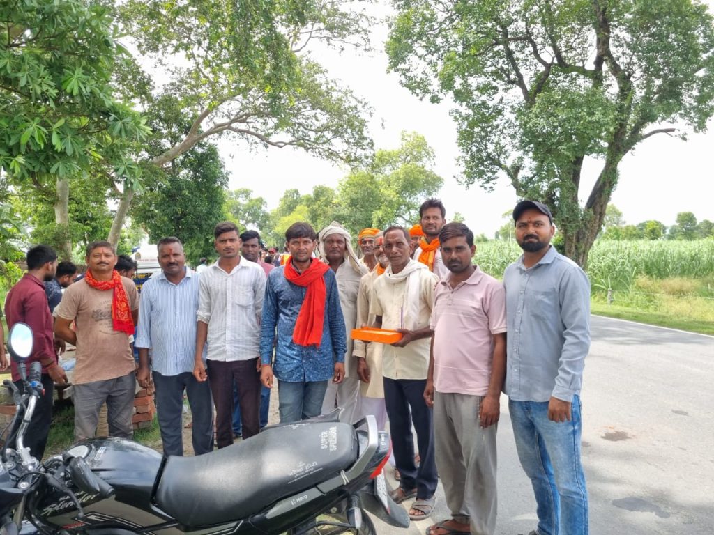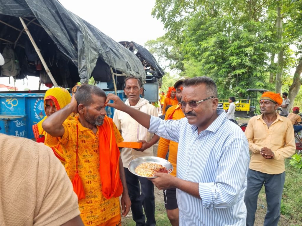 *कांवड़ियों का जत्था छोटी काशी रवाना लुधौरी चौराहे पर पूर्व प्रधान ने किया स्वागत*रिपोर्टर उत्कर्ष गुप्ता निघासन- खीरी विकास खंड निघासन की ग्राम पंचायत लुधौरी मे चौराहे परग्राम पुरैना से जा रही कावड़ पदयात्रा का पूर्व प्रधान और सम्मानित ग्रामवासियों ने उपस्थित होकर कांवड़ियों का तिलक वंदन कर मीठा खिलाकर उनको छोटी काशी के लिए रवाना किया। इस कावड़ पदयात्रा में छोटे-छोटे बच्चे बुजुर्ग एवं महिलाएं व कन्याए भी थी जो छोटी काशी भोलेनाथ के दर्शन के लिए जाती दिखी। शिव भक्तों ने ढोल डीजे और मनमोहक झांकियो के साथ कावड़ यात्रा निकाली। पूरे प्रदेश एवं क्षेत्र में कावड़ यात्रा को देखकर लोगों में काफी उत्साह देखने को मिला। समाजसेवी लोगों के द्वारा जगह-जगह पर कांवरियों के लिए जलपान की व्यवस्था स्टॉल लगाकर की जा रही है शासन प्रशासन का पूरा सहयोग कांवरियों को मिल रहा है जगह-जगह पर रुकने ठहरने की व्यवस्था की गई हैकांवड़ यात्रियों के स्वागत के लिए लुधौरी चौराहे पर पूर्व प्रधान रामपाल मौर्य,दिनेश गुप्ता, छेदीलाल यादव, विमलेश शुक्ला, रजनीश दीक्षित, रामखेलावन यादव, नंदकुमार यादव, ओम प्रकाश गुप्ता, आशीष गुप्ता छाजु, लाल बहादुर सिंह, नरेंद्र यादव, नीरज यादव,विनीत श्रीवास्तव, इंद्रपाल यादव,अनूप शुक्ला, पंकज अर्कवंशी,सचिन जयसवाल, गुलशन गुप्ता,व ग्रामवासी उपस्थित रहे।