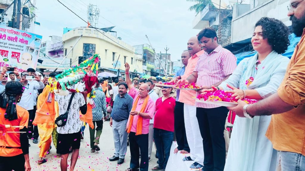 छोटी काशी गोला में शिवभक्ति का महाकुंभडीएम ने कांवड़ियों पर बरसाए फूल, डीजे की थाप पर झूमे शिवभक्त, ‘हर-हर महादेव’ से गूंज उठा वातावरणबहु आयामी समाचार वाइस ब्यूरो चीफ लखनऊ मंडल मोहम्मद आमिर 28 जुलाई लखीमपुर खीरी, सावन का पावन तीसरा सोमवार… छोटी काशी गोला में सूरज की पहली किरण के साथ ही शिवभक्ति की गंगा बह निकली। जयकारों की गूंज, कांवड़ियों की टोलियां, रंग-बिरंगी भगवा पताकाएं और भक्ति से सराबोर वातावरण ने पूरे नगर को शिवमय कर दिया। लेकिन दृश्य तब अलौकिक बन गया जब जिले की कमान संभालने वाली डीएम दुर्गा शक्ति नागपाल स्वयं कांवड़ियों के स्वागत में फूल लेकर खड़े दिखाई दी।फूलों की बारिश में नहाए कांवड़िएशिवम् तिराहा पर बनाए गए मंच से जैसे ही डीएम दुर्गा शक्ति नागपाल ने दोनों हाथों से फूलों की वर्षा की, पलकें नम हो गईं, चेहरों पर भक्ति मुस्काई और श्रद्धा ने मानो आकार ले लिया। नगर पालिका परिषद गोला विजय शुक्ला रिंकू, विधायक प्रतिनिधि मोंटू गिरी, एडीएम नरेंद्र बहादुर सिंह ने भी उनके साथ मिलकर श्रद्धालुओं पर पुष्पवर्षा की। शिवभक्तों ने तालियों की गूंज और “बोल बम” के नारों से स्वागत किया। इस दौरान एसडीएम युगांतर त्रिपाठी, तहसीलदार भीमसेन सहित बड़ी संख्या में प्रशासनिक अधिकारी मौजूद रहे।जब डीएम बनी पदयात्रीशिवभक्ति की व्यवस्था जांचने डीएम दुर्गा शक्ति नागपाल ने कांवड़ मार्ग पर पैदल चलकर रूट डायवर्जन, जल सेवा, बैरिकेडिंग, कंट्रोल रूम और चिकित्सा और खोया पाया केंद्रों का निरीक्षण किया। इस दौरान प्रशासनिक मशीनरी 24×7 मोड में दिखी। डीएम ने कहा कि कांवड़ियों की सेवा हमारा कर्तव्य है। गोला में सभी व्यवस्थाएं चाक-चौबंद हैं और लगातार मॉनिटरिंग हो रही है। शिवभक्तों की सुरक्षा के लिए पुलिस बल पूरी तत्परता से जुटा है। हमारा प्रयास है कि श्रद्धालु शांतिपूर्वक और सुरक्षित यात्रा पूरी करें।खोया मासूम. ममता बनीं डीएमगोला दर्शन में बिछड़ा छात्र, खोया-पाया केंद्र पहुंचा तो डीएम ने थामा हाथ, बिठाया, खिलाया-पिलाया, परिजनों से मिलवाया*श्रावण मास में सोमवार को शिवधाम गोला दर्शन के लिए आए परिषदीय विद्यालय सैधरी के छात्र आलोक कुमार (पुत्र सुभाष) अपने बाबा से बिछड़ गया। भीड़ में अकेला हुआ मासूम रोते-रोते मंदिर परिसर में भटकने लगा।मौके पर मुस्तैद प्रशासनिक टीम ने उसे तुरंत खोया-पाया केंद्र पहुंचाया, जहां डीएम दुर्गा शक्ति नागपाल स्वयं मौजूद थीं। बच्चे को देख डीएम ने उसे अपने पास बुलाया, अपने पास बैठाकर चुप कराया और खाने-पीने की सामग्री दी। थोड़ी ही देर में प्रशासन की मदद से परिजनों को बुलाकर बच्चे को सकुशल सुपुर्द कर दिया गया। डीएम का यह मानवीय चेहरा देख वहां मौजूद लोग भावुक हो उठे।छोटी काशी 