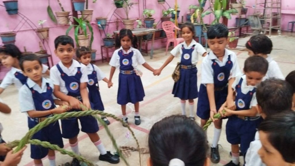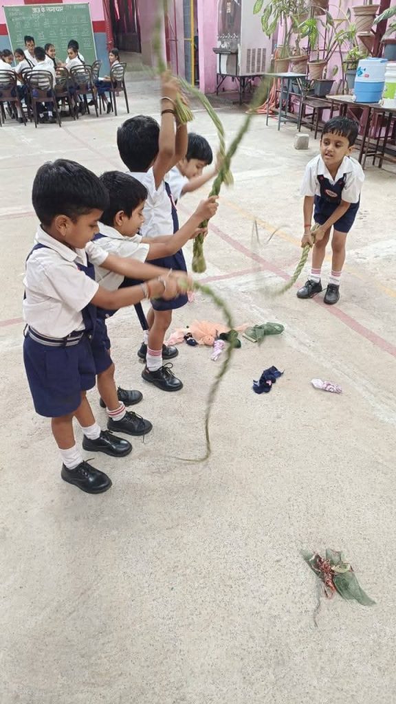 संयोजिका बहन पूनम सिंह ने ‘गुड़िया पीटने की परंपरा’ की रोचक और शिक्षाप्रद कथा सुनाई, जिसमें एक भोली बहन द्वारा नाग पर किए गए आघात के फलस्वरूप उत्पन्न सर्पदोष से मुक्ति हेतु एक कपड़े की गुड़िया को प्रतीक रूप में पीटने का विधान बताया गया। यह कथा न केवल बच्चों को मंत्रमुग्ध कर गई, बल्कि उन्हें दोष-निर्मूलन, पशु-प्रेम और धार्मिक विधियों के गूढ़ संदेश से भी परिचित करा गई।बच्चों ने रंग-बिरंगी कपड़ों से बनी गुड़िया लेकर इस परंपरा का अनुपालन किया और भाई-बहन के इस सांस्कृतिक संवाद को उल्लास के साथ जीवंत किया। संपूर्ण वातावरण संस्कृति-संवर्धन और परंपरा-प्रेम की गूंज से गुंजायमान हो उठा।