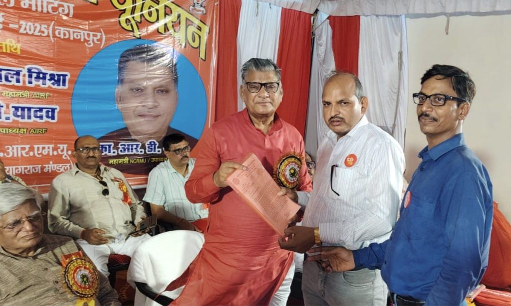 *कानपुर में डीजल और इलेक्ट्रिकल लोको की समस्याओं पर केंद्रीय परिषद को ज्ञापन सौंपा गया*कानपुर, 30 जुलाई 2025: आज कानपुर में आयोजित केंद्रीय परिषद की बैठक में नॉर्थ सेंट्रल रेलवे मैन्स यूनियन और ऑल इंडिया रेलवेमेन्स फेडरेशन (AIRF) ने डीजल और इलेक्ट्रिकल लोको से संबंधित विभिन्न समस्याओं को लेकर एक ज्ञापन सौंपा।NCRMU के संस्थापक महामंत्री कामरेड आर डी यादव और AIRF के महामंत्री कामरेड शिव गोपाल मिश्रा ने TRS DSL शाखा की ओर से यह ज्ञापन प्रस्तुत किया। ज्ञापन में मुख्य रूप से ड्रेस भत्ता और 20 इलेक्ट्रिकल लोको के ट्रांसफर जैसे मुद्दे उठाए गए।इस अवसर पर मंडल मंत्री कामरेड अमर सिंह यादव, मंडल अध्यक्ष कामरेड भावेश प्रसाद सिंह और TRS DSL शाखा सचिव बृज मोहन सिंह के साथ-साथ पदाधिकारी कामरेड राज कुमार शर्मा, सतेंद्र सिंह, नितिन गुप्ता, रविंद्र कुशवाहा, प्रदीप पाल, लक्ष्मण सेन आदि उपस्थित रहे।