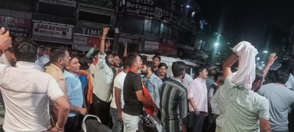 पुलिस के विरोध में सैकड़ों लोग शिवचौक पर इकट्ठा हुए। इस दौरान CO सिटी राजू साव भी मौके पर मौजूद रहे। सुमित बजरंगी ने दो दिन पहले एक वीडियो जारी कर सिटी सेंटर में होने वाले एक कार्यक्रम में लव जिहाद के आरोप लगाए थे,