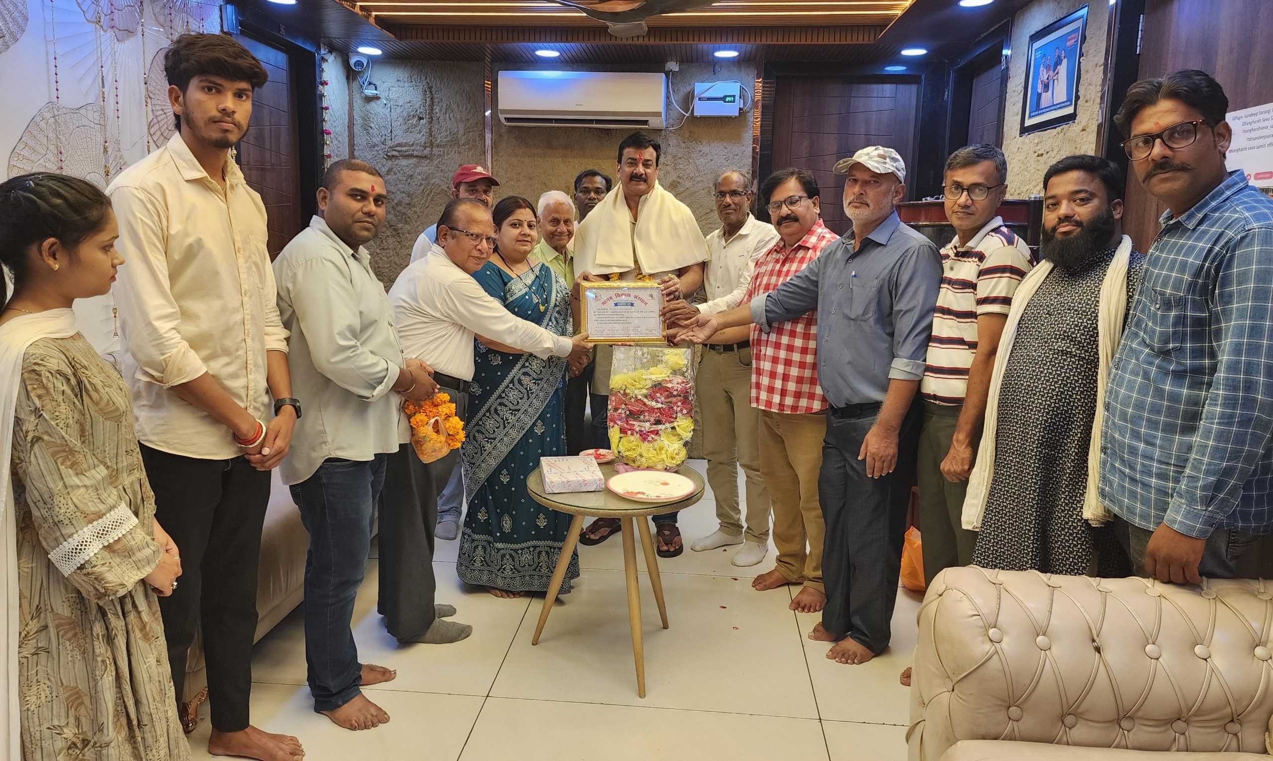 झाँसी। मानव विकास संस्थान के तत्वाधान में इजी. पी.एन. गुप्ता की अध्यक्षता, संस्थान राष्ट्रीय कन्वीनर अशोक अग्रवाल काका के सानिध्य, कोर कमेटी चेयरमैन डॉ० ध्रुव सिंह यादव की अगुवाई में वर्ल्ड ह्यूमन राइट्स प्रोटेक्शन कमीशन में उनकी नियुक्ति नेशनल वाइस प्रेसीडेंट पद पर किये जाने तथा भारत गौरव रत्न श्री सम्मान अवार्ड से सम्मानित किये जाने हेतु आज डॉ० संदीप सरावगी का सम्मान समारोह सम्पन्न हुआ। आरम्भ में मां सरस्वती की प्रतिमा पर माल्यार्पण एवं पुष्पार्चन मातृशक्ति द्वारा करते हुए कार्यक्रम का विधिवत शुभारम्भ वन्दे मातरम् गायन से किया गया।