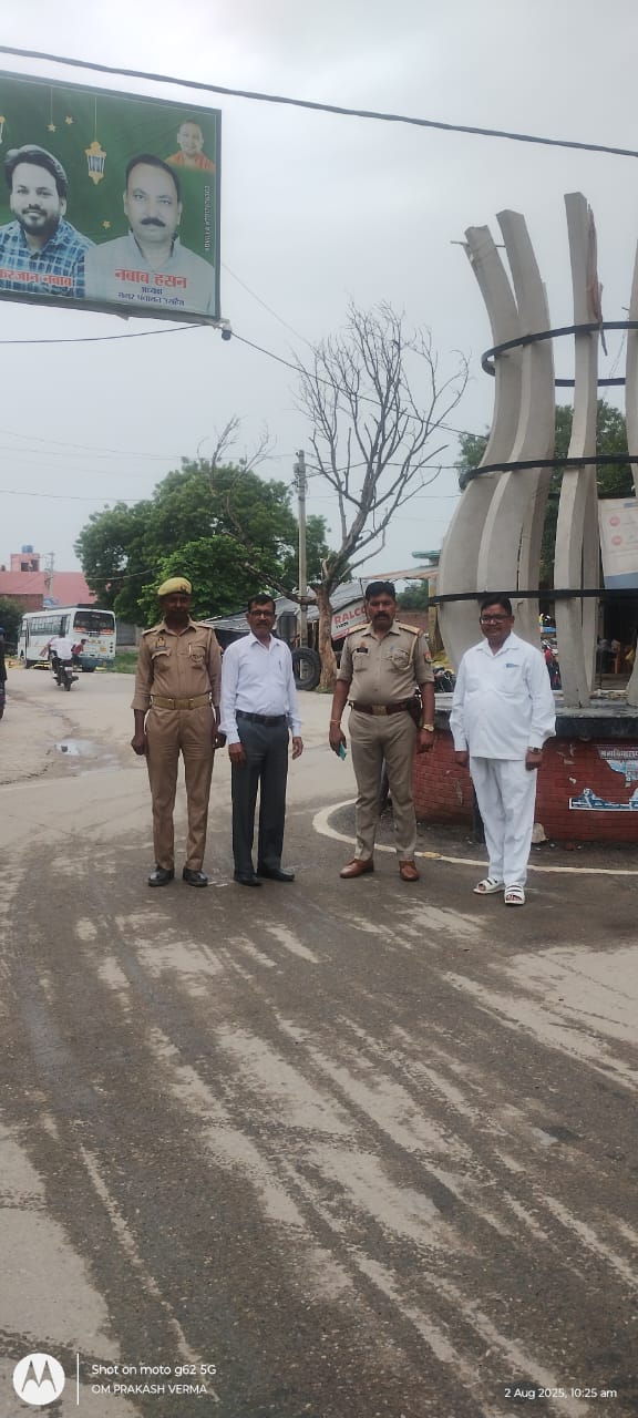 उसहैत,ककराला चौराहे पर पुलिस बल के साथ सेक्टर मजिस्ट्रेड व खंड शिक्षा अधिकारी तैनात।