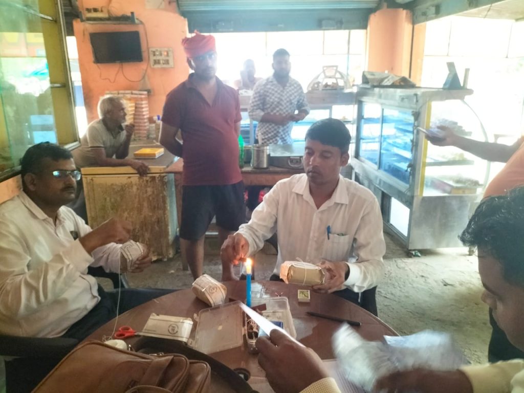 खाद्य सुरक्षा अधिकारियों का दल ने मिठाइयों की दुकान पर की छापेमारी