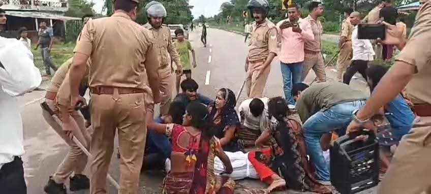 जिले में तेज रफ्तार एम्बुलेंस से शव गिरने पर परिजनों ने सड़क पर शव रखकर शुरू कर दिया हंगामा पुलिस ने कड़ी मशक्कत कर लोगों को हटाया।
