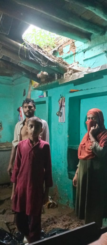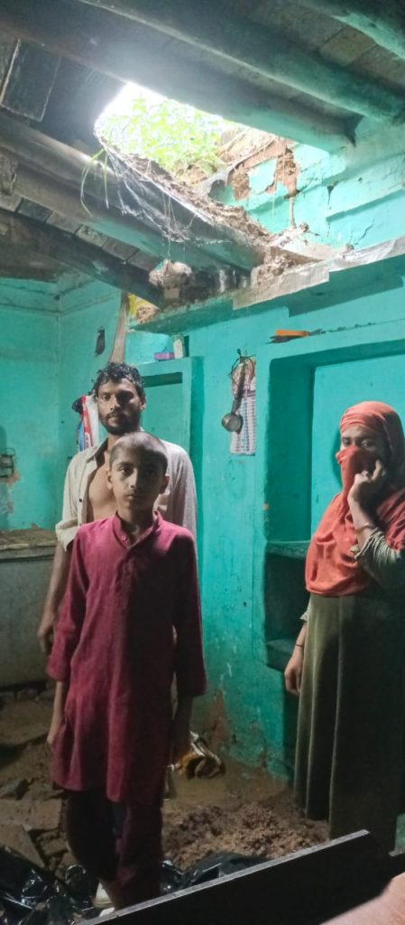 प्रधानमंत्री आवास योजना अधूरी, गरीब का उजड़ा आशियानारिपोर्टर नौशाद मलिक————————-बिजनौर।लगातार हो रही बारिश ने गरीब परिवारों के लिए मुसीबत खड़ी कर दी है। स्योहारा थाना क्षेत्र के सहसपुर देहात गांव निवासी अरशद पुत्र मरगूब के मकान की छत भारी बारिश के चलते भरभरा कर गिर गई। गनीमत रही कि हादसे के वक्त परिवार के सदस्य किसी दूसरे हिस्से में थे, जिससे कोई जानहानि नहीं हुई, लेकिन पूरा परिवार बेघर हो गया।अरशद पेशे से दर्ज़ी हैं और बेहद सीमित आय में किसी तरह छह बच्चों का पालन-पोषण कर रहे हैं। बारिश से गिरी छत के बाद अब परिवार खुले आसमान के नीचे जीवन गुजारने को मजबूर है। ग्रामीणों और पड़ोसियों ने कुछ अस्थायी सहायता जरूर दी, लेकिन स्थायी राहत की अब भी प्रतीक्षा है।ग्राम प्रधान आदिल ने जानकारी दी कि अरशद का नाम प्रधानमंत्री आवास योजना की सूची में शामिल हो चुका है, मगर अभी तक बैंक खाते में आवास निर्माण की धनराशि नहीं आई है। ग्राम प्रधान ने यह भी आश्वासन दिया कि ग्राम पंचायत स्तर से परिवार को तत्काल कुछ आर्थिक सहायता मुहैया कराई जाएगी।बीते दो-तीन दिनों से जिले भर में लगातार मूसलधार बारिश हो रही है, जिससे कई कच्चे मकानों को नुकसान पहुंचा है। ग्रामीण इलाकों में खासकर ऐसे परिवार जो अभी तक सरकारी आवास से वंचित हैं, इस मौसम में सबसे ज़्यादा प्रभावित हो रहे हैं। स्थानीय प्रशासन से मांग उठ रही है कि ऐसे परिवारों की प्राथमिकता के आधार पर मदद की जाए।