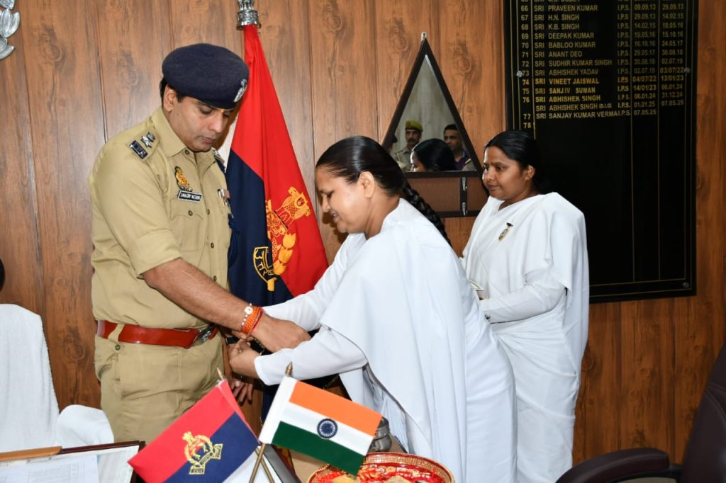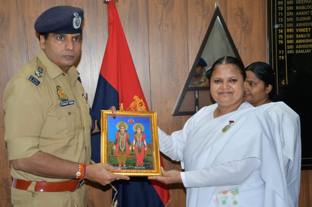 ब्रह्म कुमारी संस्थान की बहनों द्वारा वरिष्ठ पुलिस अधीक्षक मुजफ्फरनगर को बाँधी गयी राखी। वरिष्ठ पुलिस अधीक्षक द्वारा बहनों को दिया गया सुरक्षा का वचन।