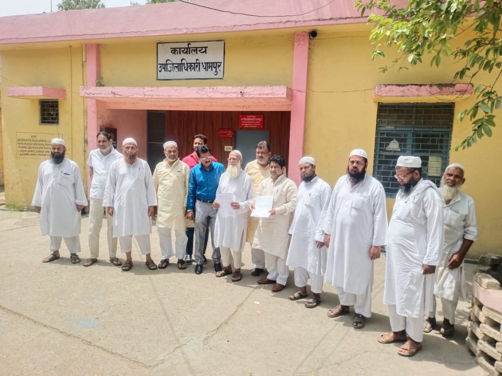 (बिजनौर) स्योहारा के शहर इमाम मौलाना कामिल अंसारी ने राष्ट्रपति के नाम एक ज्ञापन एसडीम धामपुर को सौंपा। ज्ञापन में कहा गया है कि नूपुर शर्मा ने टीवी चैनल पर डिबेट के दौरान मुस्लिम समुदाय के नबी की शान में अभद्र भाषा और अपमानजनक शब्दों का प्रयोग कर उनकी शान में गुस्ताखी की है।
