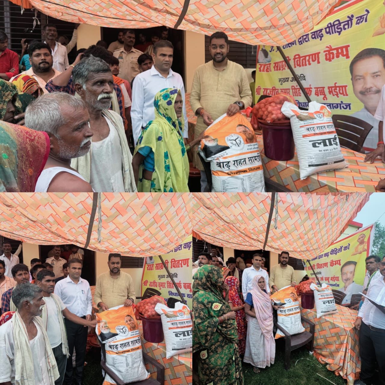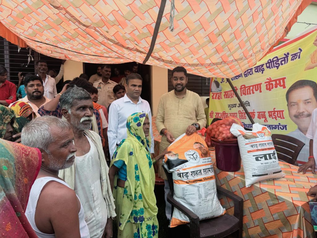 दातागंज- क्षेत्रीय भाजपा विधायक राजीव कुमार सिंह (बब्बू भईया) द्वारा विधानसभा कार्यवाही में भाग लेने के कारण उनके निर्देश पर उनके सुपुत्र युवा ब्लाक प्रमुख अतेन्द्र विक्रम सिंह ने उप जिलाधिकारी धर्मेन्द्र कुमार सिंह के साथ बाढ़ प्रभावित गांवों का भ्रमण कर बाढ़ प्रभावित रामगंगा नदी पार के मौजमपुर व हर्रामपुर गांवों में पहुंचकर करीब 600 परिवारों को बाढ़ राहत सामग्री पैकेट वितरित किये।