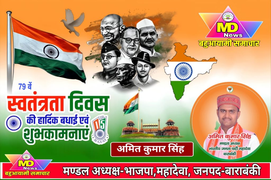 बाराबंकी-अमित कुमार सिंह,मंडल अध्यक्ष-भाजपा,महदेवा-बाराबंकी की तरफ से आप सभी देशवासियों को 79वें स्वतंत्रता दिवस की हार्दिक शुभकामनाएं..
