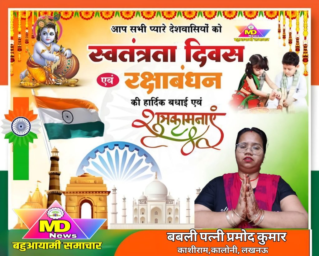 लखनऊ-समाजसेवी श्रीमती बबली पत्नी प्रमोद कुमार,ग्राम पंचायत-लोले, काशीराम कालोनी,विकासखंड-चिनहट, लखनऊ की तरफ से समस्त ग्रामवासियों एवं क्षेत्रवासियों को 79वें स्वतंत्रता दिवस की हार्दिक शुभकामनाएं..
