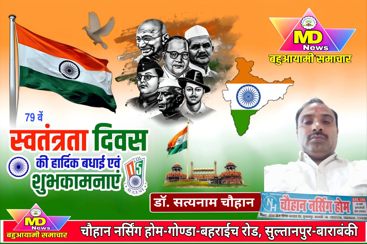 बाराबंकी:डॉ.सत्यनाम चौहान,चौहान नर्सिंग होम सुल्तानपुर, जनपद-बाराबंकी की तरफ से आप समस्त क्षेत्रवासियों एवं देशवासियों को 79वें स्वतंत्रता दिवस की एवं श्रीकृष्ण जन्माष्टमी की हार्दिक शुभकामनाएं..