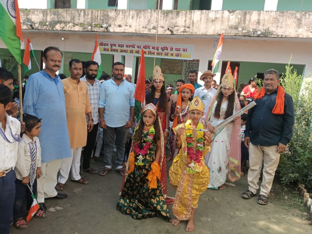 *स्वतंत्रता दिवस का कार्यक्रम बड़े ही हर्षोल्लास एवं धूमधाम के साथ मनाया गया*रिपोर्टर – उत्कर्ष गुप्ता – निघासन खीरी – विकासखंड निघासन के अंतर्गत ग्राम पंचायत लुधौरी के चंद्रभाल फूलमती सरस्वती विद्या मंदिर लुधौरी मे स्वतंत्रता दिवस का कार्यक्रम बड़े ही धूमधाम के साथ मनाया गया। मुख्य अतिथि पूर्व सांसद प्रतिनिधि अरविंद सिंह संजय ने ध्वजारोहण किया। उसके बाद भारतमाता और राधाकृष्ण,सरस्वती जी, लक्ष्मी बाई भगत सिंह,चंद्रशेखर आजाद,इन लोगो की सुंदर-सुंदर झांकियों के साथ प्रभात फेरी निकाली गई। भारत माता पूजन कार्यक्रम,श्री कृष्ण जन्माष्टमी आदि कार्यक्रमों के बारे बच्चों को बताया गया। स्वतंत्रता दिवस के अवसर पर अनेक कार्यक्रमों का आयोजन हुआ। भारत की आजादी के बारे में बच्चों को बताया गया। क्षेत्र में बच्चों की जब प्रभात फेरी निकली। बच्चों में जो उत्साह दिखाई पड़ा। *भारत माता की जय*, *15 अगस्त अमर रहे,* *महात्मा गांधी अमर रहे* आदि नारों के साथ क्षेत्र में बच्चों की आवाज गूंज रही थी स्वतंत्रता दिवस के अवसर पर गांव के सम्मानित ग्राम बंधु उपस्थित रहे। इस अवसर पर स्कूल प्रधानाचार्य सर्वेश मिश्रा स्कूल स्टाफ, जिला पंचायत प्रतिनिधि संजय गिरी,पवन गुप्ता दिनेश गुप्ता,रहीश अहमद, शीलवंत गुप्ता, डॉ प्रदीप गुप्ता,विकाश गुप्ता, विकाश अर्कवंशी,कमल शुक्ला व ग्रामवासी उपस्थित है
