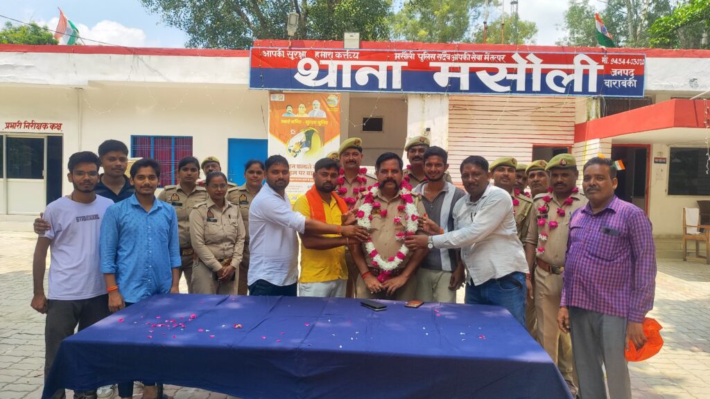 बाराबंकी। कावड़ यात्रा, श्री कृष्णा जन्माष्टमी व चेहुल्लुम त्यौहार को सकुशल सम्पन कराने पर सोमवार को हिन्दु सुरक्षा सेवा संघ के जिला प्रभारी मोहित कुमार वर्मा ने प्रभारी निरीक्षक सुधीर कुमार सिंह को माला पहना कर एव अंगवस्त्र देकर स्वागत किया।