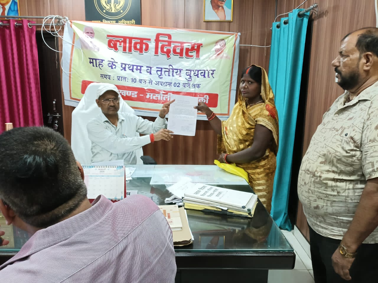 मेढिया निवासी कमलेश कुमार पुत्र मंगरे ने परिवार रजिस्टर की नकल के लिए एव राजापुर मजरे लक्षबर बजहा निवासी कल्लू पुत्र सर्वजीत ने मृत्यु प्रमाण पत्र, ग्राम करन्द निवासी जुबेर पुत्र मुन्ना ने परिवार रजिस्टर मे नाम बढ़ाने, मुश्कीनगर निवासी कमलेश पुत्र रामनरेश, रौशनी पाल पत्नी अनिल अहमद पुत्र नियाज ने जन्म प्रमाण पत्र व लक्षबर बजहा निवासी खलील पुत्र इद्दू ने परिवार रजिस्टर के लिए प्रार्थना पत्र दिया । खण्ड विकास अधिकारी ने सभी शिकायते सुनते हुए संबंधित अधिकारियो को निस्तारण के निर्देश दिये।