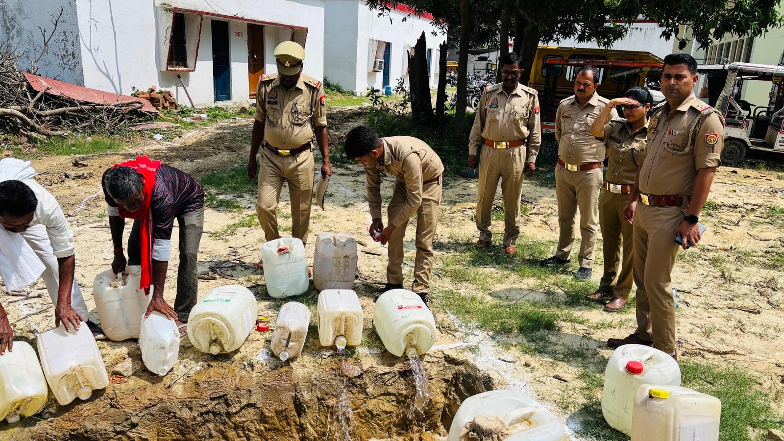 बाराबंकी माननीय न्यायालय कोर्ट नं0 19 जनपद बाराबंकी के आदेश के अनुपालन में पुलिस अधीक्षक बाराबंकी श्री अर्पित विजयवर्गीय द्वारा माल निस्तारण हेतु चलाये गये अभियान के तहत अपर पुलिस अधीक्षक दक्षिणी श्री रितेश कुमार सिंह के निर्देशन व क्षेत्राधिकारी सदर श्री सौरभ श्रीवास्तव के पर्यवेक्षण में आज दिनांक 20.08.2025 को थाना सफदरगंज पर पंजीकृत आबकारी अधिनियम के विभिन्न 53 अभियोगों में बरामदशुदा 820 लीटर कच्ची शराब के विनिष्टीकरण की कार्यवाही नियमानुसार की गयी। इस अवसर पर आबकारी निरीक्षक इंगिता पाण्डेय क्षेत्र प्रथम मय टीम व थानाध्यक्ष सफदरगंज श्री अमर कुमार चौरसिया की उपस्थित रहें।