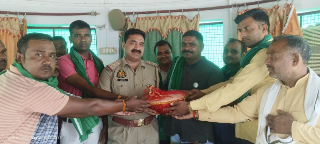 बाराबंकी/फतेहपुर,*भारतीय किसान यूनियन भानू के पदाधिकारियों ने नवागत थाना प्रभारी का किया स्वागत*आज दिनांक 22/8/2025 को तहसील फ़तेहपुर के तहसील अध्यक्ष दद्दन सिंह के नेतृत्व में दर्जनों पदाधिकारियों ने थाना मोहम्मद पुर खाला के नवागत प्रभारी निरीक्षक आशुतोष मिश्रा जी को अन्न भेंट कर स्वागत किया,और किसान हितों पर चर्चा की,प्रभारी निरीक्षक जी ने किसानों को भरोसा दिलाते हुए की हम भी किसान के बेटे है,हम किसानों को न्याय दिलाने के लिए प्रतिबद्ध है,मेरे रहते किसानों का अहित नही होगा,इस अवसर पर,किसान नेता अर्जुन विश्कर्मा,ब्लाक अध्यक्ष सूरतगंज राजेन्द्र यादव, महामंत्री आशीष तिवारी , प्रदीप वर्मा,व्रजेश रावत,जितेंद्र वर्मा,धीरेंद्र प्रधान,गौतम वर्मा,सुजल चौहान,आदि किसान साथी मौजूद रहे।नीरज कुमार की रिपोर्ट तहसील सहायक प्रभारी फतेहपुर जिला बाराबंकी