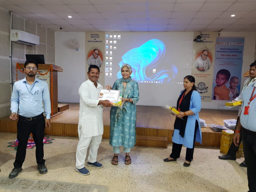 संवाददाता अर्पित कुमार त्रिवेदी डॉ०कर्नल मधू भदौरिया ने क्षेत्र के समाजसेवी राजेश सिंह तोमर सहित सौ लोगों को किया सम्मानित हरगांव सीतापुर —- हरगांव विकास खण्ड के ग्राम नयागांव फिरोजपुर निवासी किसान संघर्ष मंच के अध्यक्ष एवं समाजसेवी राजेश सिंह तोमर सहित सौ लोगों को आंख अस्पताल सीतापुर की डॉ०कर्नल मधू भदौरिया व उनकी टीम ने सम्मानित किया।प्राप्त जानकारी के अनुसार समाज में गरीब निशक्त असहाय लोगों को मोतियाबिंद ऑपरेशन सहित अन्य दवाओं की निःशुल्क सुविधा उपलब्ध कराने वाले किसान संघर्ष मंच के अध्यक्ष एवं समाज सेवी राजेश सिंह तोमर सहित सौ लोगों को सम्मान पत्र एवं स्मृति चिन्ह देकर सम्मानित किया। यह कार्यक्रम आंख अस्पताल सीतापुर के सभागार में सम्पन्न हुआ।इस कार्यक्रम में बहराइच हरदोई श्रावस्ती लखीमपुर सीतापुर के स्पॉन्सर मौजूद रहे।यह कार्यक्रम अमित सिंह शैलेंद्र शुक्ला बिजेंद्र सिंह शहनवाज के सहयोग से सम्पन्न हुआ। इस कार्यक्रम में हरगांव क्षेत्र के किसान संघर्ष मंच के अध्यक्ष व समाज सेवी राजेश सिंह तोमर को सम्मानित किए जाने पर वरिष्ठ पत्रकार सुनील गुप्ता,राकेश कुमार पाण्डेय सहित सैकड़ों लोगों ने राजेश सिंह तोमर को बधाई देते हुए आंख अस्पताल सीतापुर की डायरेक्टर डॉ कर्नल मधू भदौरिया के प्रति आभार व्यक्त किया है।