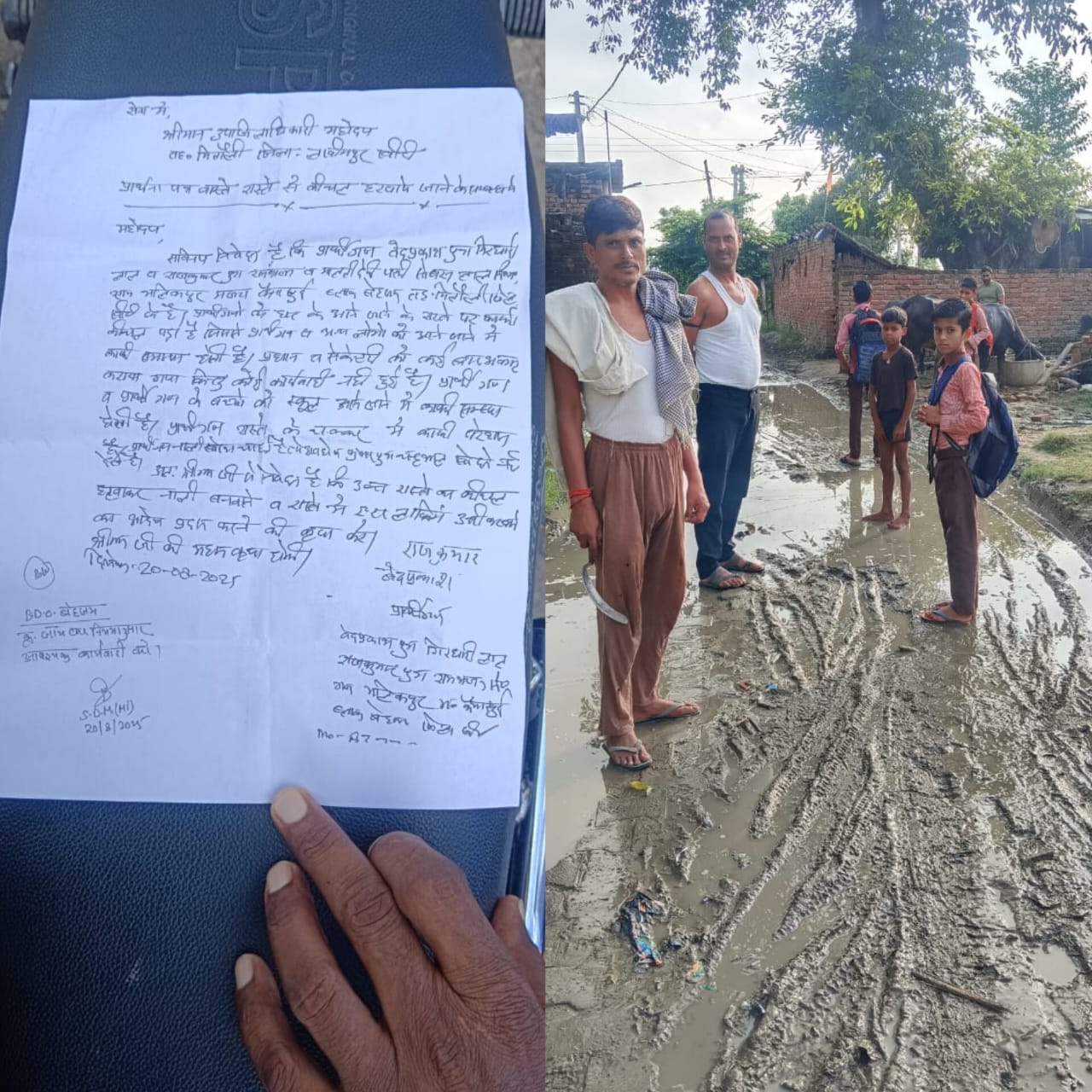 जनपद लखीमपुर खीरी के तहसील मितौली के बेहजम ब्लॉक क्षेत्र की ग्राम पंचायत कैमा खुर्द का माजरा मलिकपुर में कीचड़ युक्त पानी से ग्रामीण परेशान उपजिलाधिकारी को सौंपा ज्ञापन।