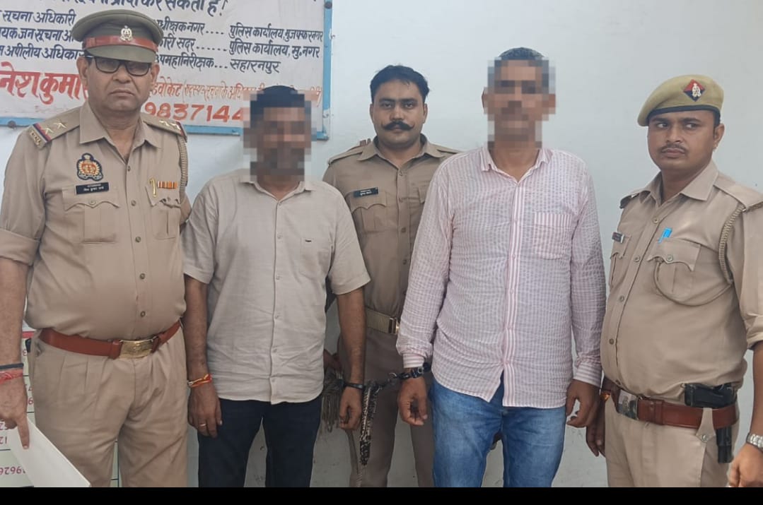 मुजफ्फरनगर। वरिष्ठ पुलिस अधीक्षक जनपद मुजफ्फनगर संजय कुमार वर्मा के एवं प्रभारी थाना भोपा के कुशल नेतृत्व में थाना भोपा पुलिस एवं एसटीएफ नोएडा की टीम द्वारा थानाक्षेत्र भोपा में वर्ष 2009 में विनोद कुमार व वर्ष 2010 में उनके पिता श्री राजकरण की हत्या की गयी थी। हत्यारे तभी से फरार चल रहे थे तथा उन पर व 40-40 हजार रूपये के इनाम घोषित किया हुआ था। थाना भोपा पुलिस व एसटीएफ की टीम ने अभियुक्तों को सानन्द, अहमदाबाद, गुजरात व प्रतापनगर जयपुर, राजस्थान से गिरफ्तार किया गया। अभियुक्तों के नाम, धीरज राठी पुत्र श्री ऋषिपाल निवासी ग्राम भोपा थाना भोपा, मुजफ्फरनगर। व नीरज पुत्र श्री ऋषिपाल निवासी ग्राम भोपा थाना भोपा, मुजफ्फरनग,है। थाना भोपा पुलिस द्वारा अभियुक्त के खिलाफ संगीन धाराओं में मुकदमा पंजीकृत कर अग्रिम विधिक कार्रवाई की जा रही है।