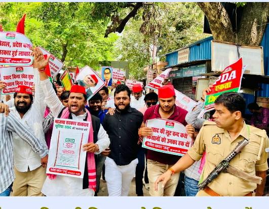 बाराबंकी में खाद की किल्लत से किसान परेशान है सहकारी समितियों पर लंबी-लंबी लाइन लगाने के बाद भी खाद नहीं मिल पा रही समाजवादी पार्टी के पूर्व एमएलसी राजेश यादव उर्फ राजू व जिला महासचिव हिमांशु यादव ने डीएम कार्यालय पर प्रदर्शन कर सौपा ज्ञापन बाराबंकी उत्तर प्रदेश जिले में खाद का संकट खत्म होने का नाम नहीं ले रहा है जा रहा है अन्नदाता किसान जो पूरे देश का पेट भरते हैं आज खुद एक-एक बोरी के लिए सरकारी समितियां के चक्कर लगाने को मजबूर हैं किसानो की समस्या को लेकर पूर्व विधान परिषद सदस्य राजेश यादव राजू सपा कार्यकर्ताओं के साथ जिलाधिकारी कार्यालय पहुंचकर ज्ञापन सौपा पूर्व एमएलसी राजेश यादव राजू ने कहा की सहकारी समितियां पर खाद की भारी किल्लत है किसान दिन रात खाद पाने के लिए लंबी-लंबी कतार में पसीना बहा रहे हैं लेकिन उन्हें जरूरत के अनुसार खाद उपलब्ध नहीं हो पा रही है यह स्थिति बेहद दुखद और असहनीय है उन्होंने कहा कि किसानों का इस तरह दर-दर भटकना किसी भी कीमत पर बर्दाश्त नहीं किया जाएगा समाजवादी पार्टी किसानों के साथ कंधे से कंधा मिलाकर हमेशा खड़ी है जब तक किसानों की समस्या का समाधान नहीं हो जाता तब तक हम आवाज उठाते रहेंगे समाजवादी पार्टी की कार्यकर्ताओं ने किया पैदल मार्च इससे पहले समाजवादी पार्टी कार्यकर्ताओं ने राजेश यादव राजू पूर्व एमएलसी के नेतृत्व और जिला महासचिव हिमांशु यादव की अध्यक्षता में गान्ना दफ्तर से लेकर डीएम कार्यालय तक पैदल मार्च किया इसके बाद किसानों की समस्याओं से संबंधित जिला अधिकारी को ज्ञापन सौपा प्रशासन से तत्काल समाधान की मांग की सपा जिला महासचिव हिमांशु यादव ने कहा जिला प्रशासन को किसने की समस्याओं का तुरंत समाधान करना चाहिए किसानों को उनकी जरूरत के हिसाब से खाद उपलब्ध कराई जाए जिससे कि कि इस उमस भरी गर्मी में लाइन में लगे अन्नदाताओं को राहत मिल सके उन्होंने कहा कि जो किसान पूरे देश का पेट भरता है उन किसानों को दर भटकना बहुत शर्मनाक है, प्रदर्शन में शामिल रहे प्रमुख लोग इस मौके पर प्रदेश सचिव जितेंद्र पटेल जिला उपाध्यक्ष प्रदुमन यादव जिला पंचायत सदस्य चक्खन यादव जिला सचिव ज्ञान सिंह यादव प्रदेश सचिव रजनी यादव तरन्नुम निशा विजय रावत हरिनाथ सिंह रंजीत यादव अनुज यादव बलवान सिंह रामवीर सिंह दीपक कुमार अमित कुमार दिलीप कुमार अभिषेक वर्मा अमित यादव सतीश यादव पुष्पेंद्र यादव रमेश चंद्र अनिल कुमार लवकुश यादव गुरु वचन लाल यादव विश्वनाथ यादव रमेश यादव शाहिद अनेक पदाधिकारी वह कार्यकर्ता उपस्थित रहे।