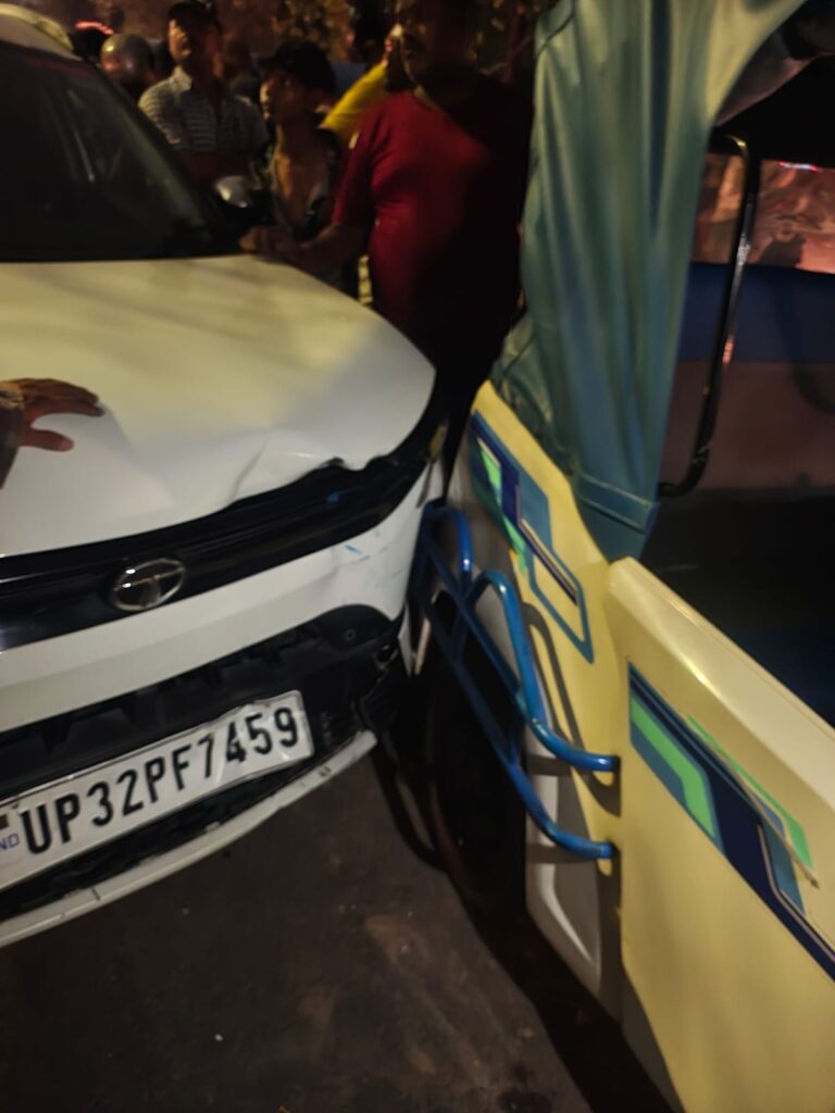 *मौके पर मौजूद जनता का कहना हैं काफ़ी दूर से लोगो को ठोक्कर भगाते ला रहा था चार पहिया वाहन।