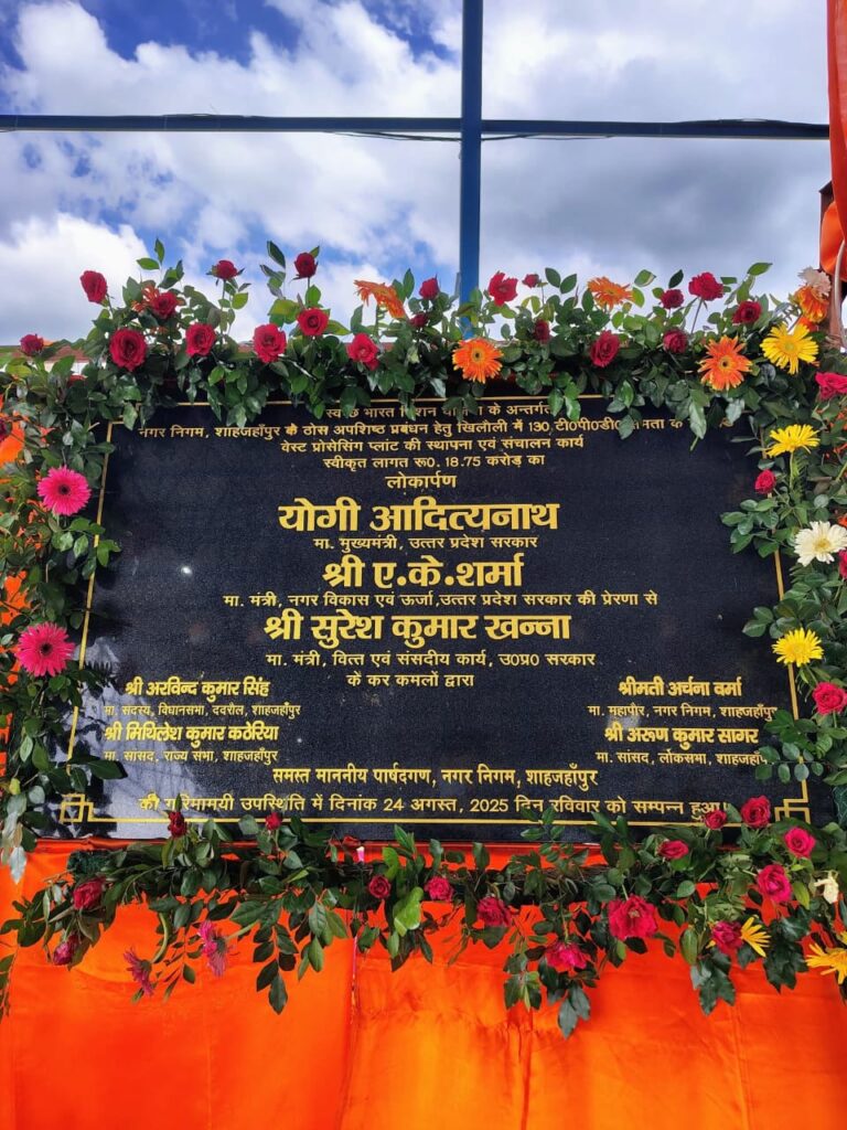 आज शाहजहांपुर में मा० वित्त एवं संसदीय कार्य मंत्री श्री सुरेश कुमार खन्ना जी द्वारा 18.75 करोड़ रुपये की लागत से नगर निगम, शाहजहांपुर में निर्मित सॉलिड वेस्ट मैनेजमेंट प्रोसेसिंग प्लांट का लोकार्पण किया गया। इस अवसर पर मा० महापौर, सांसद, विधायकगण सहित अन्य जनप्रतिनिधि व अधिकारीगण भी उपस्थित रहे।यह प्लांट प्रतिदिन शहर से एकत्र होने वाले सूखे व गीले कचरे का वैज्ञानिक पद्धति से निस्तारण करेगा और गीले कचरे से खाद तैयार होगी, जिसका उपयोग विभिन्न कार्यों में किया जाएगा। यह न केवल स्वच्छता के क्षेत्र में एक महत्वपूर्ण कदम है बल्कि शाहजहांपुर को स्वच्छ और स्वस्थ बनाने की दिशा में मील का पत्थर साबित होगा।मैं नगर निगम टीम, कार्यदायी संस्थाओं तथा सभी नागरिकों से अपील करता हूं कि घरों से निकलने वाला सूखा और गीला कचरा अलग-अलग करके ही नगर निगम के वाहनों को दें। स्वच्छता में आप सभी का सहयोग अत्यंत आवश्यक है। आइए, मिलकर शाहजहांपुर को स्वच्छ और हरित शहर बनाने का संकल्प लें।