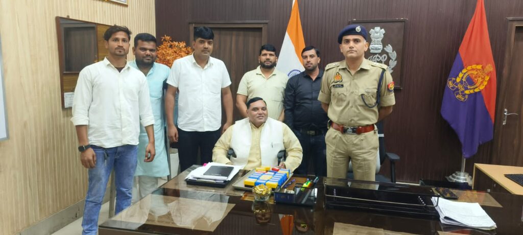 आज राष्ट्रीय विकलांग एसोसिएशन के राष्ट्रीय अध्यक्ष एम आर पाशा के नेतृत्व में संगठन के साथी युवा प्रदेश अध्यक्ष शहजाद अहमद,राष्ट्रीय उपाध्यक्ष मो आजम, वाइस प्रेसिडेंट मौहम्मद वसीम,युवा मंडल अध्यक्ष सरताज अहमद,सलमान ने पुलिस अधीक्षक हरदोई कार्यालय पहुंचकर तेजतर्रार,लोकप्रिय,न्याय प्रिय,ईमानदार गरीबों के मसीहा पुलिस अधीक्षक नीरज कुमार जादौन जी को गुलदस्ता देकर शिष्टाचार भेंट की।दिव्यांगों की विभिन्न समस्याओं को लेकर अवगत कराया।