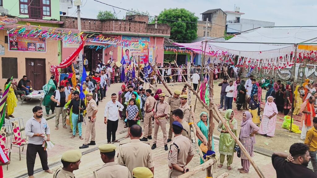 पुलिस अधीक्षक नगर द्वारा थानाक्षेत्र चरथावल के अन्तर्गत ग्राम दूधली स्थित गोगा म्हाढ़ी मेला की सुरक्षा व्यवस्था का जायजा लेकर सम्बन्धित को दिये आवश्यक दिशा-निर्देशजनपद मुजफ्फरनगर के थानाक्षेत्र चरथावल के अन्तर्गत ग्राम दूधली में जाहरवीर गोगा म्हाढ़ी पर प्रतिवर्ष मेले का आयोजन किया जाता है। जिसमें बड़ी संख्या में स्थानीय व अन्य जनपदों से श्रद्धालु आतें हैं। आज दिनांक 25.08.2025 को पुलिस अधीक्षक नगर श्री सत्यनारायण प्रजापत महोदय द्वारा मेला को सकुशल सम्पन्न कराने के उद्देश्य से ग्राम दूधली स्थित गोगा म्हाढ़ी मेले की सुरक्षा-व्यवस्था का जायजा लिया गया तथा सम्बन्धित को सुरक्षा-व्यवस्था सम्बन्धी आवश्यक दिशा-निर्देशों से अवगत कराया गया। महोदय द्वारा मेले में पेयजल बैरिकेडिंग व पार्किंग व्यवस्था का भी निरीक्षण किया गया। साथ ही किसी भी आपात स्थिति से निपटने के लिये फायर ब्रिगेड व एंबुलेंस आदि की व्यवस्था का भी निरीक्षण किया गया। इसके साथ ही महोदय द्वारा मेले में आने वाले श्रद्धालुओं के साथ चोरी व स्नैचिंग जैसी घटनाओं को रोकने के लिये अधीनस्थों को पुलिस पेट्रोलिंग करने सहित अन्य आवश्यक दिशा- निर्देशों से भी अवगत कराया गया।इस दौरान क्षेत्राधिकारी सदर डा0 रविशंकर, प्रभारी निरीक्षक थाना चरथावल जसवीर सिंह सहित अन्य पुलिस अधिकारी/कर्मचारीगण मौजूद रहे। MD News बहुआयामी सामाचार चैनल जिला ब्यूरो प्रमुख रोहित जैन बुढ़ाना मुजफ्फरनगर mo no.9412582966