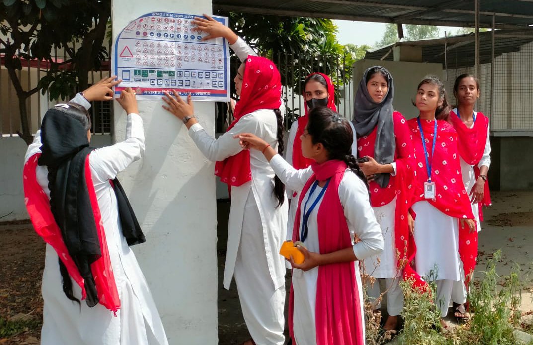 सहसवान : डी पी स्नातकोत्तर महाविद्यालय में सड़क सुरक्षा अभियान के तहत छात्राओं ने यातायात संकेत समझाकर दीवार पर संकेत पोस्टर लगाये । प्राचार्या डॉ शुभ्रा माहेश्वरी ने छात्राओं को निर्देशित करते हुए कहा कि वह वाहन चालकों को यातायात संकेत समझाकर जाग्रत करें । तत्पश्चात् सहप्रभारी श्री दिव्यांश सक्सेना के निर्देशन में छात्रों को निर्देश दिए गए कि वह स्वयं हैल्मेट पहनें व और लोगों में भी जागरुकता फैलायें कि हमेशा दो सवारी ही बाइक पर चलें । ड्राइविंग लाइसेंस साथ रखना चाहिए। बी एस सी छात्रा कु हुमा नाज ने सड़क संकेत बताते हुए कहा कि विद्यालयों के आगे वाहन की स्पीड हल्की रखनी चाहिए। ज्योति ने कहा कि हमें कम उम्र के भाई बहनों को वाहन हाथ में नहीं देना चाहिए। डॉ मुकेश राघव व विनोद यादव ने बताया कि वह स्वयं हैल्मेट पहनकर चलते हैं तो दूसरों को कहने के हकदार होते हैं कि हैल्मेट का प्रयोग करो।