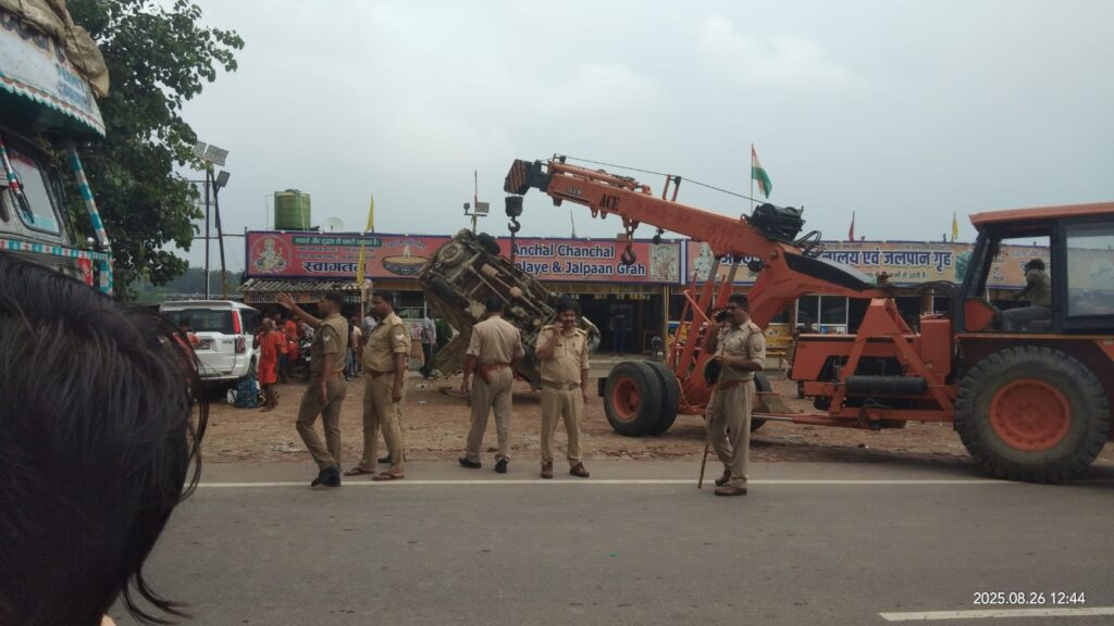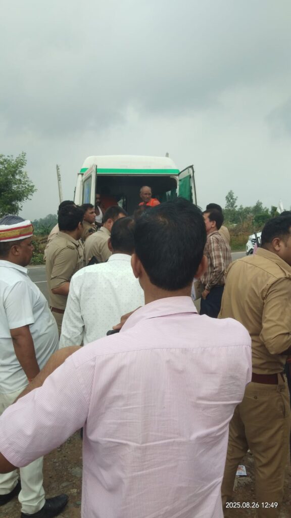 बाराबंकी गोंडा बहराइच हाईवे पर अंचल चंचल भोजनालय के सामने छोटा हाथी और परिवहन निगम की बस और छोटा हाथी लोडर गाड़ी की जबरदस्त टक्कर बस चालक बुढल चौराहे पर बस छोड़कर फरार। रामनगर बाराबंकी राष्ट्रीय बांदा बहराइच राजमार्ग पर अंचल चंचल ढाबा के पास परिवहन निगम रोडवेज बस और छोटा हाथी लोडर में टक्कर हो गई इस हादसे के इस हादसे में एक दर्जन से अधिक लोग घायल हो गए सूचना मिलते ही पुलिस और तहसील प्रशासन के अधिकारी मौके पर पहुंच गए और घायलों को एंबुलेंस के जरिए सामुदायिक स्वास्थ्य केंद्र रामनगर भेजा गया वह सभी घायल भक्तों का इलाज चल रहा है जानकारी के अनुसार हरकाबाद सीतापुर और विशुनापुर बड्डूपुर बाराबंकी के लगभग 30 से 35 लोग छोटा हाथी गाड़ी जिसका नंबर यूपी 32 एन एस8288 पर सवार होकर गोंडा स्थित दुख हरण नाथ दर्शन करके के लौट रहे थे तभी रायबरेली डिपो की परिवहन निगम बस यूपी78 केएन 0271 ने पीछे से टक्कर मार दी टक्कर इतनी भीषण थी कि छोटा हाथी लोडर गाड़ी सड़क किनारे लगभग 12 फीट गड्ढे में पलट गया स्थानीय लोगों ने शोर सुनते ही मौके पर पहुंच कर बचाव कार्य शुरू कर दिया और पुलिस प्रशासन को सूचना दी गनीमत रही की सभी यात्री स कुशल बच गए इधर रोडवेज बस चालक ने बुढ़वल चौराहे पर बस खड़ी कर के मौके से फरार हो गया रामनगर कोतवाली पुलिस ने बस को कब्जे में लेकर चालक की तलाश शुरू कर दी है।
