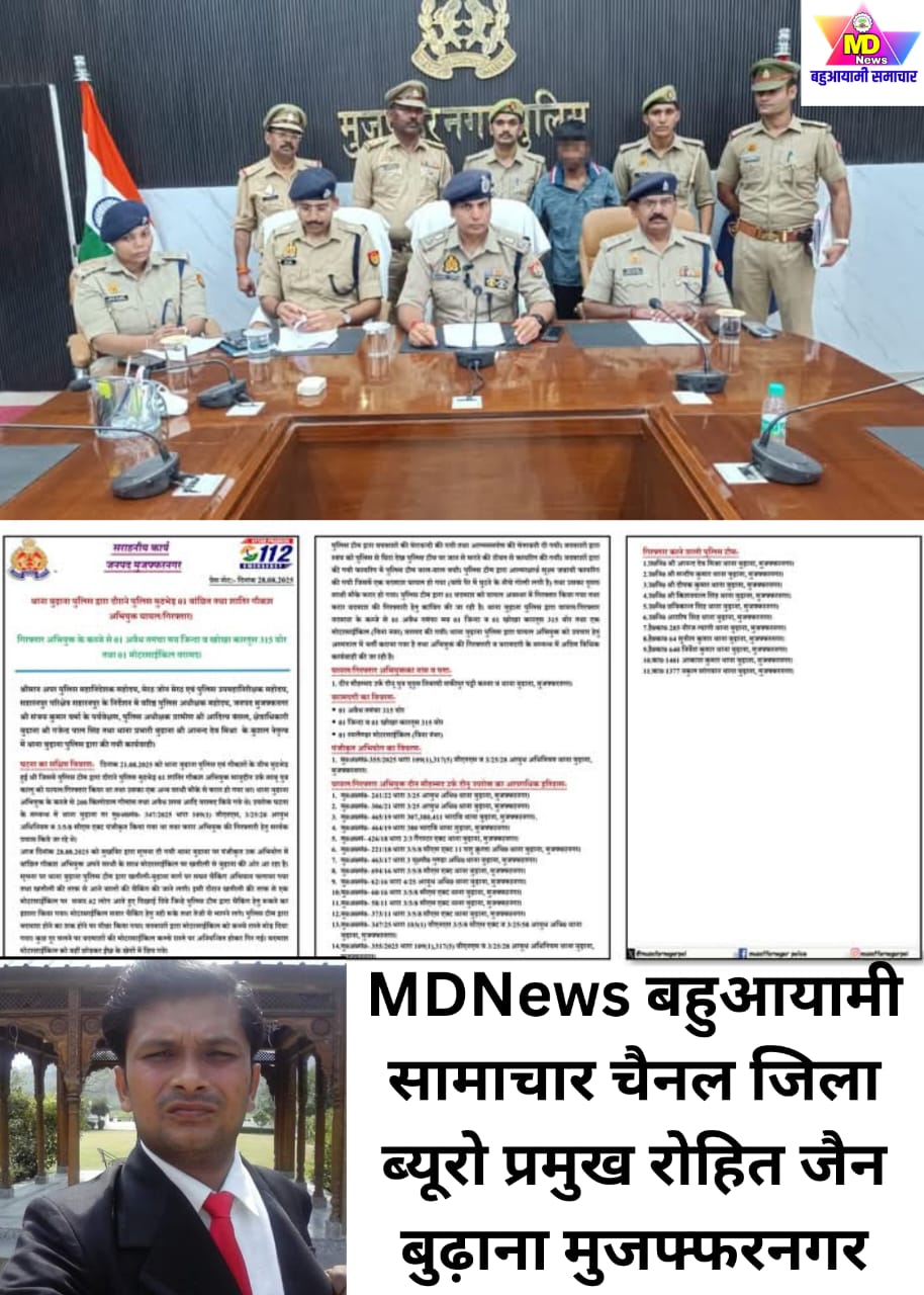 आज 28 अगस्त 2025 दिन बृहस्पतिवार को जनपद मुजफ्फरनगर के कस्बा बुढाना में गौ कसी अपराधी को किया गिरफ्तार
