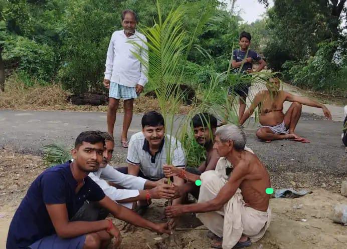 कंदरोला पुरवा में हनुमान मंदिर में वृक्षारोपण ग्रामीण ने रोपे सैकड़ो फलदार और छायादार पौधे लागये।