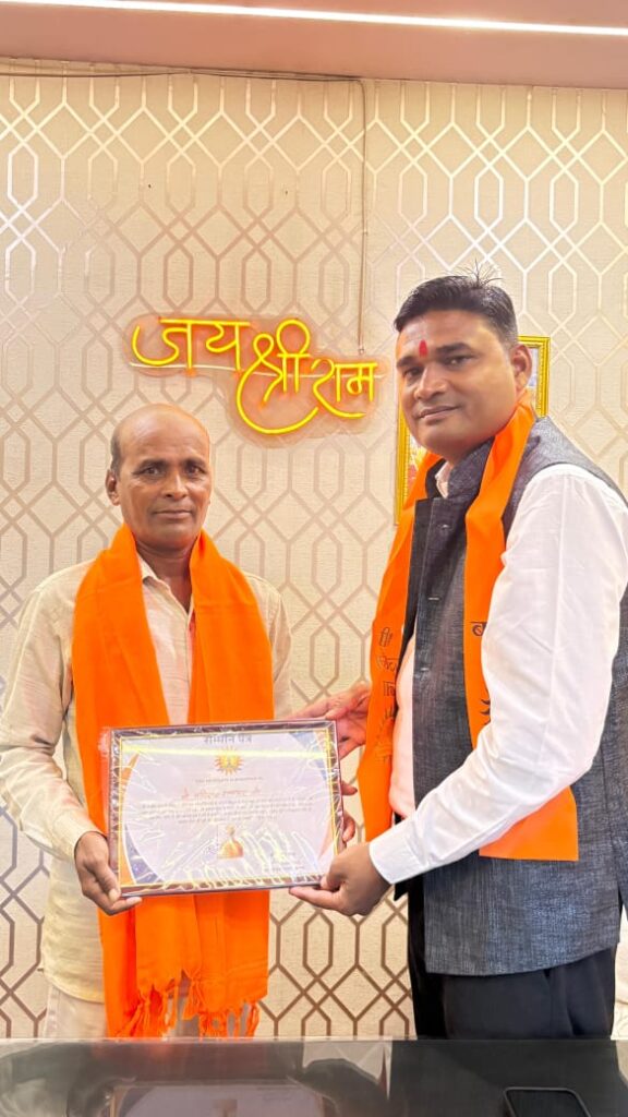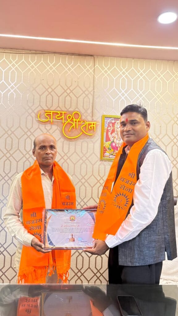 वाराणसी से जिला ब्यूरो अमन विश्वकर्मा की रिर्पोट श्री बजरंग सेना के राष्ट्रीय अध्यक्ष हितेश विश्वकर्मा से जौनपुर जिला संघठन मंत्रीबलराम राजभर की भेंटआज श्री बजरंग सेना के राष्ट्रीय कार्यालय पर जौनपुर जिला संघठन मंत्री बलराम राजभर ने संगठन के राष्ट्रीय अध्यक्ष हितेश विश्वकर्मा से सौजन्य मुलाक़ात की।इस भेंट के दौरान संगठन की मज़बूती, आगामी योजनाओं तथा उत्तर प्रदेश विशेषकर जौनपुर जिले में श्री बजरंग सेना के कार्यों को और तेज़ी से आगे बढ़ाने पर विस्तृत चर्चा हुई।राष्ट्रीय अध्यक्ष श्री हितेश विश्वकर्मा जी ने बलराम राजभर को संगठन के कार्यों में सक्रिय योगदान हेतु मार्गदर्शन और प्रेरणा प्रदान की।मुलाक़ात के दौरान बलराम राजभर ने राष्ट्रीय अध्यक्ष को यह भरोसा दिलाया कि बहुत जल्द जौनपुर जिले में श्री बजरंग सेना की एक भव्य एवं सशक्त टीम का गठन किया जाएगा, जो संगठन के उद्देश्यों और विचारधारा को जन-जन तक पहुँचाने में अग्रणी भूमिका निभाएगी।इस अवसर पर दोनों नेताओं ने यह संकल्प लिया कि श्री बजरंग सेना समाज में राष्ट्रवाद, सांस्कृतिक उत्थान और सामाजिक समरसता की भावना को और मज़बूती प्रदान करेगी।