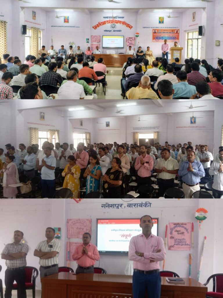 प्रशिक्षण के दूसरे बैच का शुभारंभ सोमवार को डायट गणेशपुर बाराबंकी में प्राचार्य एवं उप शिक्षा निदेशक डॉ० राजेश कुमार आर्या के निर्देशन में मां सरस्वती की प्रतिमा के समक्ष दीप प्रज्वलन के साथ हुआ। डायट प्रवक्ता एवं राज्य स्तरीय संदर्भ दाता आनंद कुमार यादव, लालचंद ,महेंद्र कुमार यादव ,जहीर अहमद जितेंद्र कुमार सोनकर सुकेश रंजन श्रीवास्तव ,अमित कुमार राय,शिखा साहू,गीतांजलि यादव के द्वारा विभिन्न विषयों में सहज एवं सरल रूप से प्रशिक्षण दिया जा रहा है। प्रशिक्षण के क्रम में संदर्भ दाता आनंद कुमार यादव ने नवीन पाठ पुस्तकों का उन्मुखीकरण, संदर्भ दाता लालचंद नई शिक्षा नीति 2020 एवं राष्ट्रीय पाठ्यचर्या की रूपरेखा 2023 आइ सी आईसीटी का प्रयोग संदर्भ दाता जहीर अहमद, टाइम एंड मोशन एवं शासनादेश, महेंद्र कुमार यादव आपदा प्रबंधन एवं अमित कुमार राय ने जीवन कौशल डॉ गीतांजलि ने शिक्षण योजना एवं पाठ योजना निर्माण जबकि शिखा शाहू ने गणित शिक्षण की बारीकियों से रूबरू कराते हुए गणित शिक्षण को कैसे सरल एवं रोचक बनाया जाए पर गुरुजनों को तकनीक से परिचित कराया एवं समस्या समाधान के स्किल पर जानकारी दी। इस जिला स्तरीय पांच दिवसीय एकीकृत प्रशिक्षण मॉड्यूल संपूर्ण विषयों पर आधारित प्रशिक्षण जिसमें ब्लॉक फतेहपुर,त्रिवेदीगंज, दरियाबाद,रामनगर बनिकोडर के शिक्षक पांच दिन तक प्रशिक्षण प्राप्त करेंगे प्रशिक्षण में प्रशासनिक अधिकारी केके अवस्थी, प्रवक्ता महेन्द्र यादव, सुकेश रंजन श्रीवास्तव, अमित कुमार राय, जितेंद्र कुमार सोनकर, लालचंद ,आंनद कुमार यादव, जहीर अहमद,डॉक्टर गीतांजलि यादव और शिखा साहू समेत डाइट के समस्त कर्मचारी उपस्थित रहे। प्रशिक्षण आठ सितंबर को समाप्त होगा।