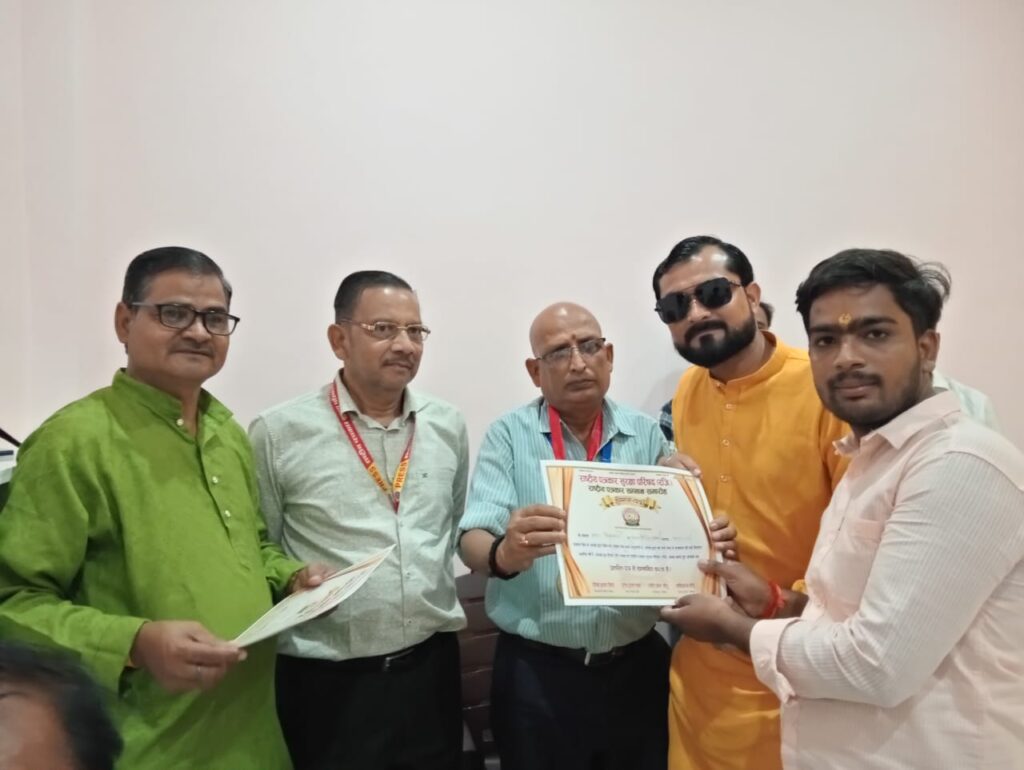 इसी लिए आप सभी लोग मिलकर वाराणसी में एक विशाल टीम गठित करके अपने आपको और अपने संगठन को मजबूत करें। इसी कड़ी में विशिष्ट अतिथि प्रदेश संगठन मंत्री सुरेश कुमार शर्मा ने कहा कि यह संगठन नहीं है। बल्कि यह आप सभी पत्रकार साथियों का एक विशाल परिवार है। इसे मजबूत बनाना हम सभी का पहला दायित्व है । हमें अपने परिवार से जुड़े हुए हर एक पदाधिकारियों के हर दुःख सुख और एक दूसरे के प्रति समर्पित होकर अपने संगठन को मजबूत बनाने में सफलता हासिल करना होगा। इसी क्रम में इस कार्यक्रम में उपस्थित रहे। सभी पदाधिकारियों को प्रदेश संगठन मंत्री ने सम्मान पत्र देकर व पुष्प गुच्छ अंग वस्त्र देकर सम्मानित किया गया।