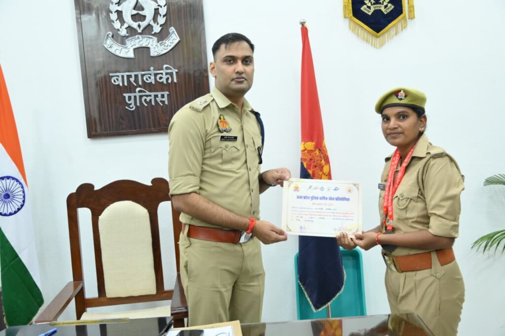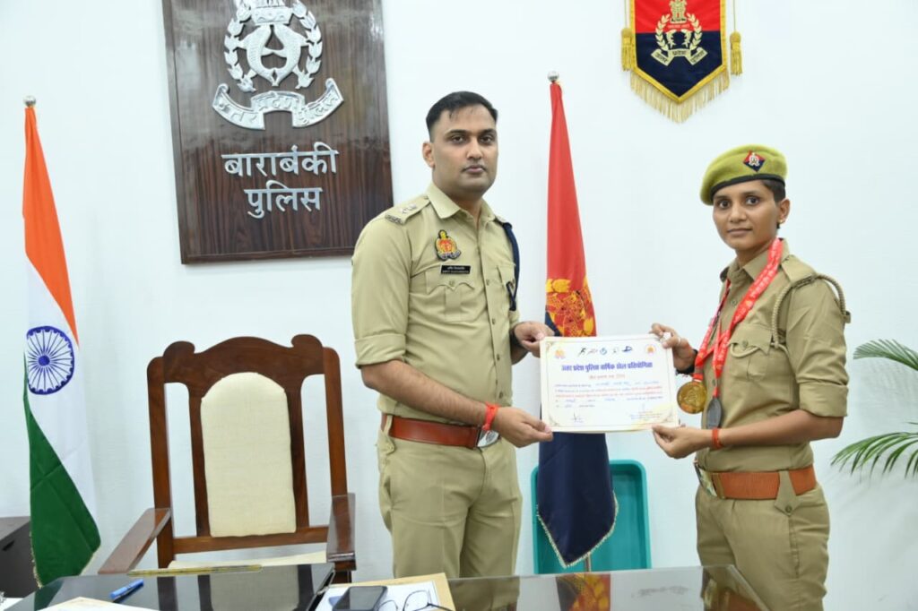 आयोजित प्रतियोगिता में बाराबंकी पुलिस में नियुक्त म0आरक्षी गायत्री सिंह व आकांक्षा सरन ने लखनऊ जोन की टीम की ओर से प्रतिभाग कर उत्कृष्ट प्रदर्शन करते हुए खो-खो इवेण्ट में प्रथम स्थान तथा कबड्डी इवेण्ट में तृतीय स्थान प्राप्त किया गया। इस उपलब्धि पर पुलिस अधीक्षक बाराबंकी श्री अर्पित विजयवर्गीय द्वारा हर्ष व्यक्त करते हुए महिला पुलिस कर्मियों को खेल प्रमाण पत्र दिया गया एवं उनके उज्ज्वल भविष्य की कामना की गई।