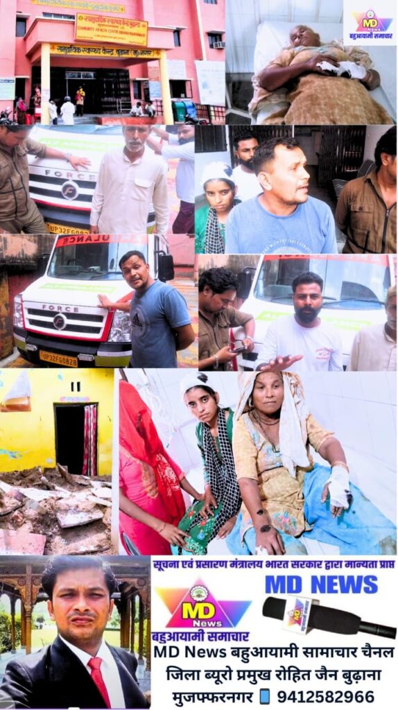 जनपद मुजफ्फरनगर कस्बा बुढ़ाना के गांव लोई में कुधु नाम के व्यक्ति के घर की छत गिरने से परिवार के लोग हुए घायल गांव के लोगों ने बुढ़ाना सामुदायिक स्वास्थ्य केंद्र में कराया भारती वहां पर डॉक्टर ने परिवार की महिला को मुजफ्फरनगर रेफर कर दिया इस पर108 एम्बुलेंस 01.30 घंटे से 2 घंटे तक नहीं आई और एंबुलेंस कॉल हेल्पलाइन में भी एंबुलेंस के लिए मना कर दिया मजबूरन MD News रोहित जैन ने 112 हेल्पलाइन पर कॉल कर कर एंबुलेंस हेल्प मांगी जिस पर पुलिस प्रशासन बुढ़ाना की टीम ने एंबुलेंस व्यवस्था कराई और महिला को जिला अस्पताल के लिए रेफर किया