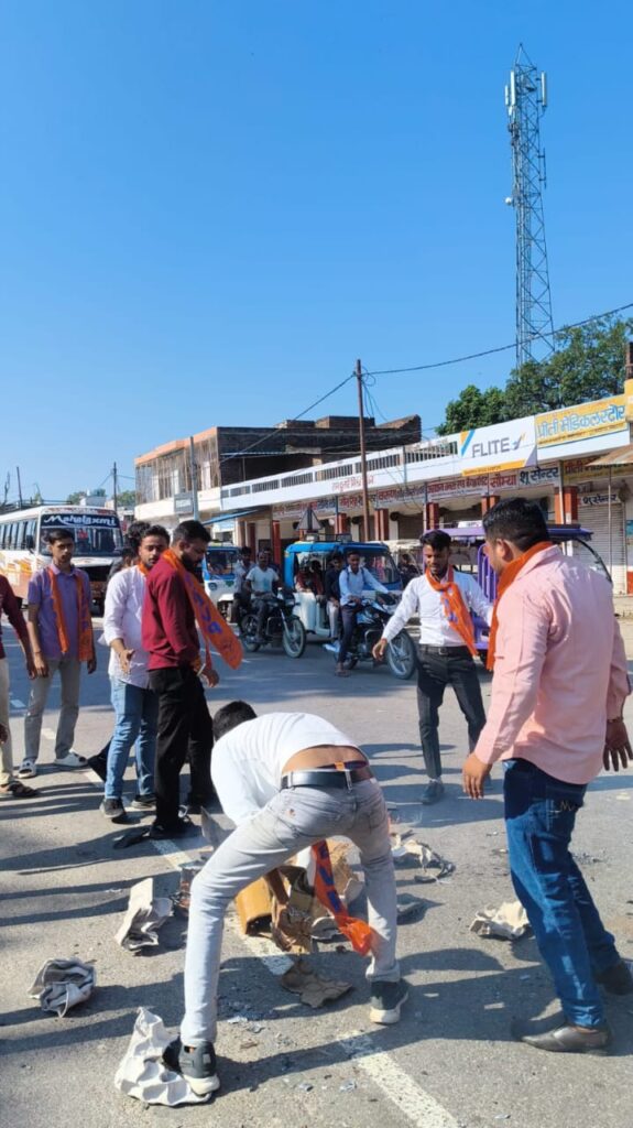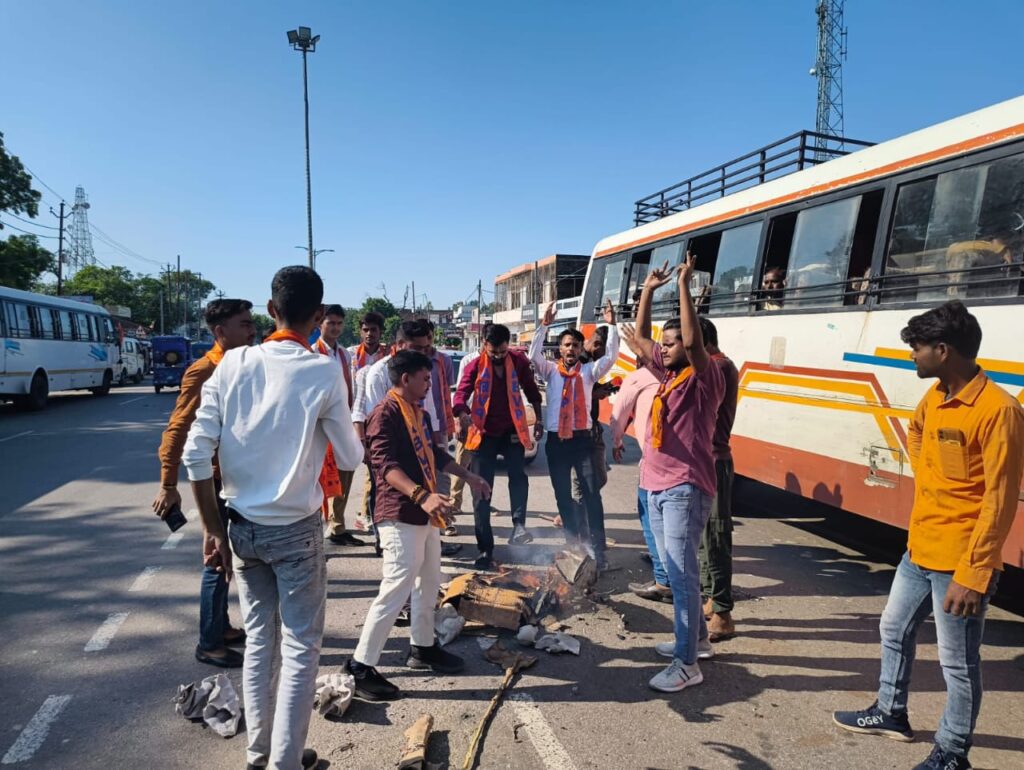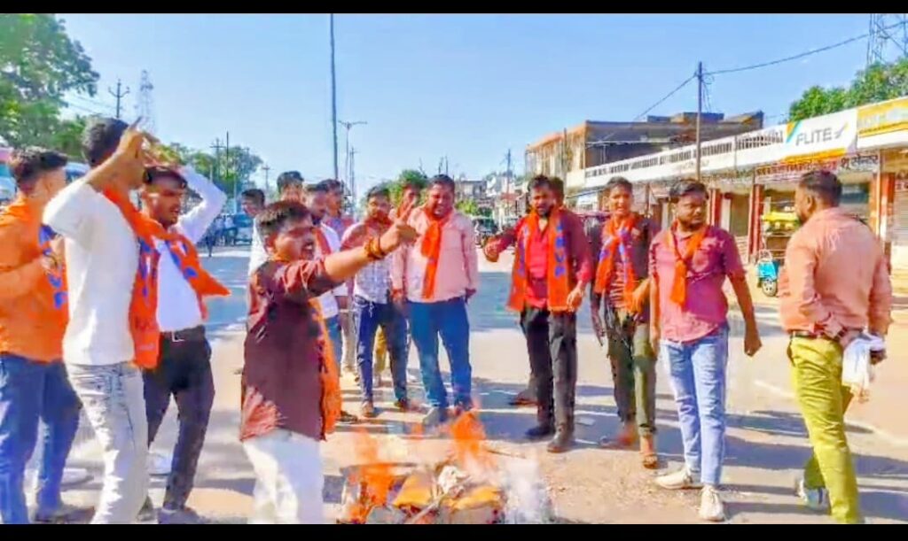 संवाददाता अर्पित कुमार त्रिवेदी *अभविप हरगांव नगर इकाई ने फूंका कैबिनेट मंत्री ओमप्रकाश राजभर का पुतला*अखिल भारतीय विद्यार्थी परिषद हरगांव नगर इकाई के द्वारा श्री रामस्वरूप विश्वविद्यालय देवा बाराबंकी में विधि के छात्रों के साथ अवैध धन उगाई के विरोध में विद्यार्थी परिषद के कार्यकर्ता व छात्रों के द्वारा शांतिपूर्ण विरोध करने पर विद्यार्थी परिषद के कार्यकर्ताओं पर पुलिस व विश्वविद्यालय के द्वारा पोषित गुंडो के द्वारा कार्यकर्ताओं पर जानलेवा हमला किया गया । कार्यकर्ताओं को गंभीर रूप से चोटें आई । आकाश अवस्थी ने संबोधित करते हुए कहा की विद्यार्थी परिषद 1949 से लेकर निरन्तर छात्र-छात्राओं के लिए संघर्ष करते आ रही है । जैसा कि उत्तर प्रदेश के कैबिनेट मंत्री ओमप्रकाश राजभर के द्वारा विद्यार्थी परिषद के कार्यकर्ताओं को गुंडा बोला बताना उनकी दूषित मानसिकता को प्रदर्शित करता है जिसके विरोध में एबीवीपी हरगांव नगर इकाई नगर इकाई के कार्यकर्ताओं द्वारा हरगांव मेन चौराहे पर कैबिनेट मंत्री ओमप्रकाश राजभर का पुतला दहन किया गया तथा उत्तर प्रदेश सरकार के गृह सचिव संजय कुमार के मुरादाबाद नारे लगाये गए। गोपाल मिश्रा ने कहा विद्यार्थी का एक एक कार्यकर्ता निरन्तर संघर्ष करता रहेगा जब तक कार्यकर्ताओं के साथ इंसाफ नहीं हो जाता है । कदम मिलाकर एक एक साथ चलते रहेंगे । शिवा अवस्थी ने कहा उत्तर प्रदेश सरकार से मांग है कि ऐसे दलबदलू मंत्री को तत्काल रूप से कैबिनेट से बाहर करें तथा संजय कुमार को बर्खास्त करें इस अवसर पर अंकुर सोनी,हर्ष,शुभम,विकास,आयुष,सचित,चमन ,रोशन, अनस, फरहान, आजाद यादव ,प्रशांत ,शुभम, हरिओम, अर्पित ,वैभव, चित्रांश ,आदि कार्यकर्ता उपस्थित रहे।