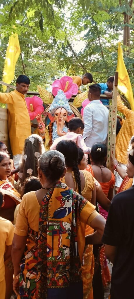 गणपति बप्पा मोरिया अगले बरस तू जल्दी आ जय गणेश जय गणेश जय गणेश देवा का भजन कीर्तन करते हुए नागरिक को ने बड़े ही धूमधाम से गणेश जी को विसर्जित करने के लिए ले जाते हुए नचाते गाते हुए बड़े ही तादात में लोग उपस्थित हुए थे नई काशीराम कॉलोनी में