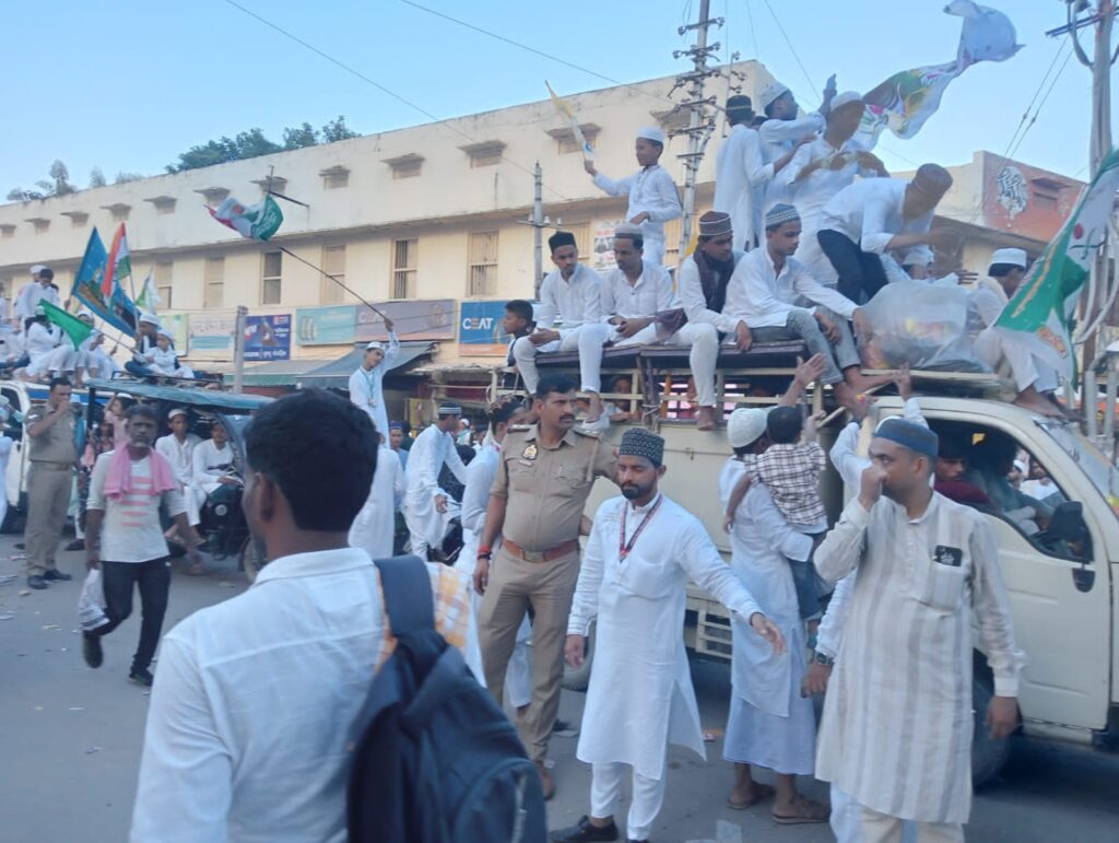 आज यानी 5,,9,, 2025को पैगंबर हजरत मोहम्मद (सल्लल्लाहु अलैहि वसल्लम) के विलादत यानी जश्न-ए-ईद मिलादुन्नबी के मौके पर शहर में एक शानदार जुलूस निकाला गया। यह जुलूस शहर की पुरानी परंपरा को निभाते हुए पूरे शान-ओ-शौकत के साथ