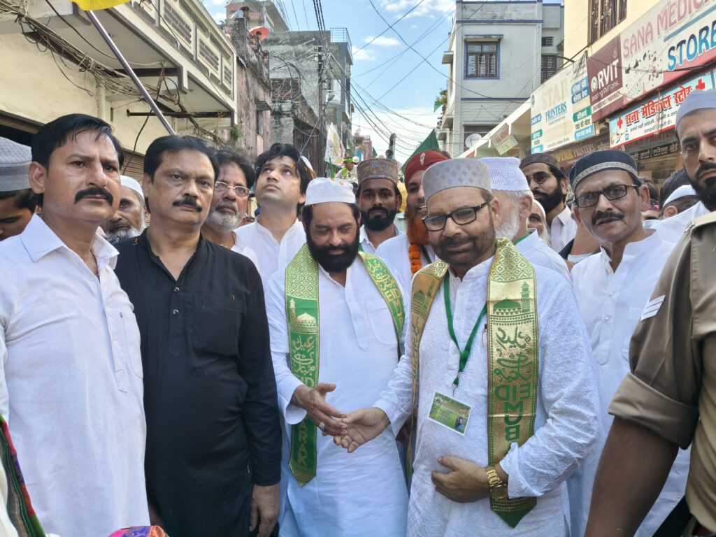 हिफजुर्रहमान नजीबाबाद रिपोर्टरनजीबाबाद : जश्न-ए-ईद मिलादुन्नबी पर जुलूस-ए-मोहम्मदी का आयोजन, गूंजे नारेनजीबाबाद में जश्न-ए-ईद मिलादुन्नबी के मौके पर हर साल की तरह इस बार भी जुलूस-ए-मोहम्मदी का भव्य आयोजन किया गया। जुलूस की शुरुआत दुआ के साथ की गई और झंडी दिखाकर जुलूस को रवाना किया गया। इस दौरान “पत्ती-पत्ती फूल-फूल या रसूल, या रसूल” और “सरकार की आमद मरहबा, सरकार की अहमद मरहबा” के नारों से पूरा माहौल गूंज उठा।कार्यक्रम में बड़ी संख्या में लोग शामिल हुए और पूरे जोश और उत्साह के साथ जुलूस में शरीक रहे। नगर की गलियों और चौक-चौराहों से होकर निकले इस जुलूस में लोगों ने पैगंबर-ए-इस्लाम के प्रति अपनी मोहब्बत और अकीदत का इज़हार किया।इस अवसर पर विधायक हाजी तस्लीम अहमद, नजीबाबाद नगर पालिका अध्यक्ष इंजीनियर मौआजम सहारनपुर चेयरमैन खुर्शीद मंसूरी, नगर के वरिष्ठ समाजसेवी आसिफ मुक्ति, सभासद आसिफ खान, सपा के नगर अध्यक्ष फरहान खान, मोहम्मद शानू, मोहम्मद अजीम, अदनान शमशी नजीब अहसन सहित कई प्रमुख लोग मौजूद रहे।जुलूस-ए-मोहम्मदी शांतिपूर्ण माहौल में निकाला गया। कार्यक्रम के दौरान जगह-जगह लोगों ने जुलूस का स्वागत किया और तबर्रुक भी बांटा गया। पूरे नगर में इस मौके पर जश्न और भाईचारे का संदेश दिया गया।