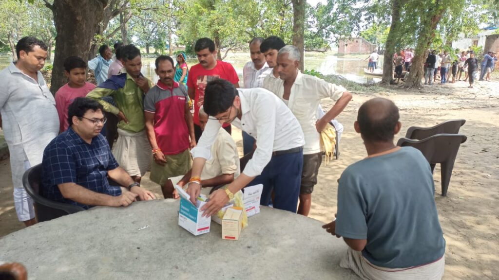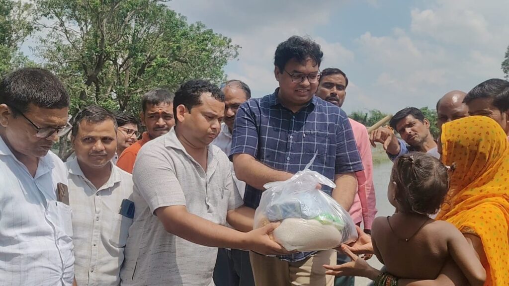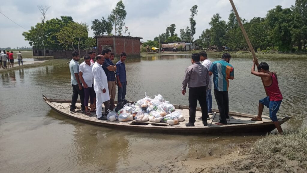 ,MD News बहुआयामी समाचार से मोहम्मद अशफाक की रिपोर्टगोला गोकर्णनाथ लखीमपुर, बरसात के दिनों में शारदा नदी से उत्पन्न बाढ़ ने इलाके के कई गांव के सैकड़ों परिवारों को बेघर कर दिया है। बेघर परिवार अभावग्रस्त जीवन जीने को मजबूर हैं। ऐसे कठिन समय में सनशाइन हॉस्पिटल गोला/सीतापुर के प्रबंध निदेशक डॉ. कौशल वर्मा ने मानवता का परिचय देते हुए बाढ़ प्रभावित परिवारों तक स्वयं पहुंचकर राहत सामग्री वितरित की है।डॉक्टर ने कहा कि आपदा की इस घड़ी में सभी को एकजुट होकर पीड़ितों की मदद करनी चाहिए।मानव सेवा के लिए प्रत्येक सामर्थ्य वान व्यक्ति को जाति ,धर्म, सम्प्रदाय और क्षेत्रीय सीमा से आगे बढ़कर पहल करने की जरूरत होती है। डॉक्टर कौशल गोला से आकर शारदा नदी की बाढ़ से प्रभावित बिजुआ ब्लॉक के अंतर्गत ग्राम चकपुरवा, नयापुरवा, कुरियानी जो कि बाढ़ में नष्ट होकर सिर्फ नक्शे में रह गया है।नष्ट होने के कगार पर बेचेपुरवा गांव के निराश्रित और बेबस लोगों के बीच राहत सामग्री वितरित की गई। जोकि बंधे पर रहकर समय काट रहे हैं।डॉक्टर कौशल नें सभी सैकड़ों परिवारों को राशन किट, पीने का पानी, दवाइयां और आवश्यक घरेलू सामान उपलब्ध कराया। स्थानीय लोगों ने डॉ. कौशल वर्मा और उनकी टीम का आभार जताते हुए कहा कि उनकी यह पहल बाढ़ पीड़ितों के लिए संबल बन गई है पूर्व में टीम डॉक्टर ने निघासन क्षेत्र के ग्राम टहारा में बाढ़ पीड़ितों को खाद्य सामग्री एवं दवाइयां वितरित की थी, समय समय पर वह हर जरूरतमंद की यथा संभव मदद करते रहते हैं। गोपाल गुप्ता,सुमित पांडे,सुशील पांडे,कपिल वर्मा,प्रतीक मिश्रा, ओमप्रकाश, प्रभात,लाला राम,ज्ञानचंद वर्मा,अनुज सिंह,आतिश त्रिवेदी,केके वर्मा,आदेश वर्मा,अमित वर्मा,सचिन प्रभाकर,अवधेश सिंह आदि मौजूद रहे।