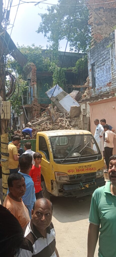 मकान गिरने से मलवे में कई बाईक दबी साथ ही दोनों घरों की गृहस्थी हुई बर्बाद दोनों परिवारों का रो रो कर बुरा हाल