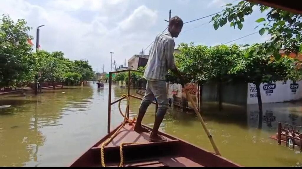 ब्रेकिंग न्यूज़ मथुरा एम डी न्यूज़ रिपोर्टर, जितेंद्र वृंदावन में जमुना का जलस्तर भारी मात्रा में बढ़ता हुआ। मथुरा जनपद के श्री धाम वृंदावन में जमुना जी का जल अपना रौद्र रूप में चारों तरफ पानी ही पानी हो रहा है जमुना जी का जलस्तर बढ़ने से वृंदावन की गली, मकान, दुकान, सभी में घुसा पानी और सड़कों पर जनता अपना नाव चला कर जीवन -जापन कर रही हैमोक्ष धाम वृंदावन में भारी मात्रा में जमुना जी का पानी भर गया है। और जमुना जी का पानी बढ़ता ही जा रहा है और जमुना का रौद्र स्वरूप डूबा और वृंदावन परिक्रमा मार्ग मैं भी काफी मात्रा में पानी है।