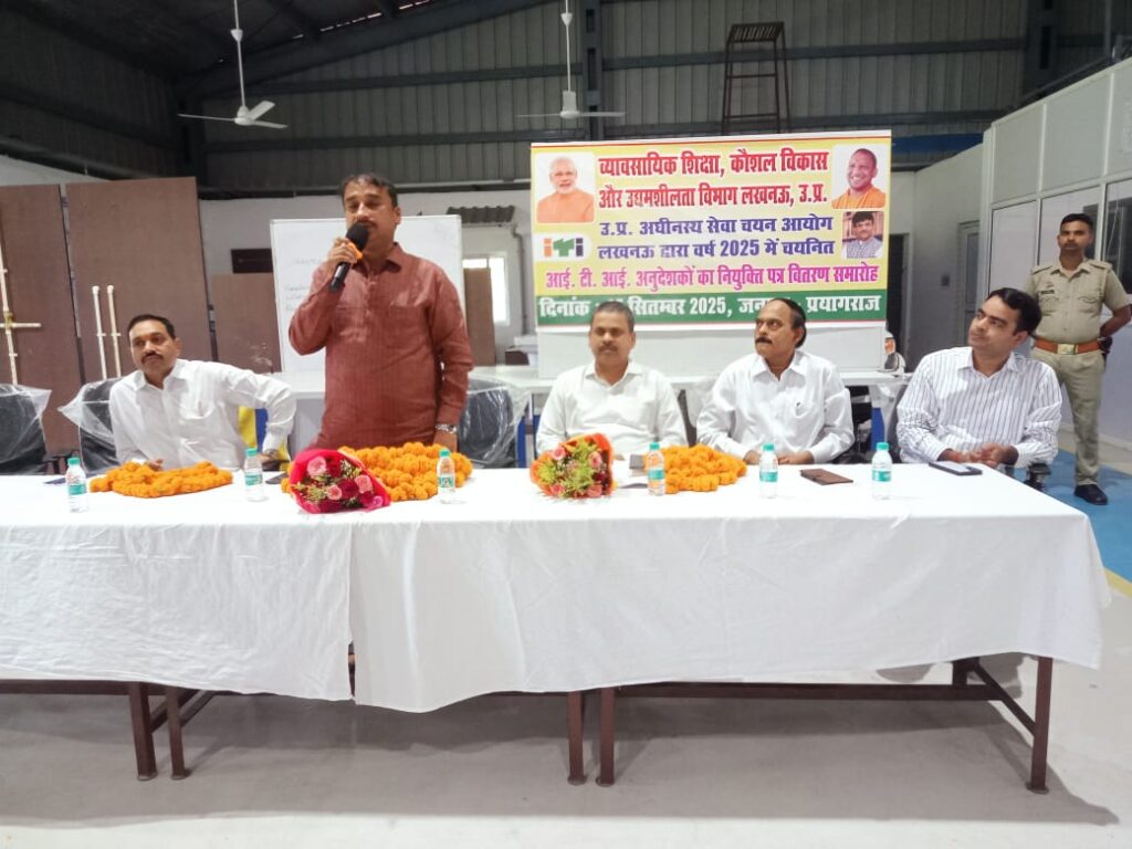 **विधायक फूलपुर ने राजकीय औद्योगिक प्रशिक्षण संस्थान नैनी में आयोजित कार्यक्रम में नवनियुक्त अनुदेशकों को नियुक्ति पत्र वितरित किया*मुख्यमंत्री श्री योगी आदित्यनाथ जी के कर-कमलों द्वारा रविवार को लोक भवन लखनऊ में आयोजित कार्यक्रम में उत्तर प्रदेश अधीनस्थ सेवा चयन आयोग लखनऊ द्वारा घोषित अंतिम परिणाम में चयनित विभिन्न व्यवसाय के अनुदेशकों को नियुक्ति पत्र का वितरण किया गया। इस कार्यक्रम का सजीव प्रसारण जनपद प्रयागराज में राजकीय औद्योगिक प्रशिक्षण संस्थान (ITI) नैनी में किया गया। राजकीय औद्योगिक प्रशिक्षण संस्थान नैनी में आयोजित कार्यक्रम में विधायक फूलपुर दीपक पटेल जी के द्वारा नवनियुक्त अनुदेशकों को नियुक्ति पत्र वितरित किया गया। इस अवसर पर अपर जिलाधिकारी विजय शर्मा, नोडल प्रधानाचार्य अशोक कुमार, कटरा आईटीआई प्रधानाचार्य हिमांशु द्विवेदी मौजूद रहे।इस अवसर पर विधायक जी ने नवनियुक्त अनुदेशकों के उज्जवल भविष्य की कामना करते हुए शुभकामनाएं दी और उन्हें अपने पद के उत्तरदायित्व को पूरी तन्मयता और इमानदारी से निर्वहन करने के लिए कहा । उन्होंने कहा कि आपको सेवा का अवसर मिला है इसलिए अपनी प्रतिभा एवं ऊर्जा को जनता की सेवा में लगाएं। नियुक्ति प्रमाण पत्र पाने वालों में कुमारी सोनी, अंशी पटेल, आशुतोष गुप्ता, राजदेव प्रजापति, कुमारी शकुंतला, जागेश्वर विकास राजकुमार, सना फातिमा, अजय शुक्ला, संजय यादव आदि रहे। कार्यक्रम को सुचारू रूप से संपन्न कराने में इस संस्थान के वरिष्ठ कार्यदेशक मोहनीश कुमार का विशेष योगदान रहा। उनके सहयोगियों में कर्मचारी संगठन के मंत्री शहजाद अहमद खान, अमृतलाल गुप्ता, कार्यदेशक रामसमुझ रहे । कार्यक्रम का संचालन ज्योति पाण्डेय द्वारा किया गया।