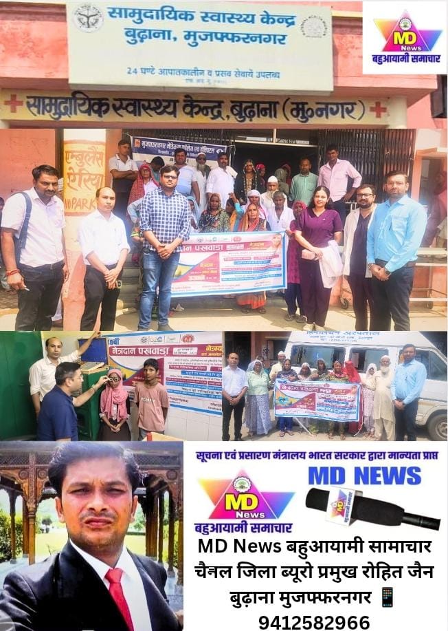 राष्ट्रीय अंधता निवारण कार्यक्रम के अंतर्गत नेत्रदान पखवाड़ा के कार्यक्रम में मुख्य चिकित्सा अधिकारी डॉक्टर सुनील तेवतिया के दिशा निर्देश में व डॉक्टर दिव्या डीपीएम आई के द्वारा सामुदायिक स्वास्थ्य केंद्र बुढ़ाना पर प्रभारी चिकित्सा अधिकारी डॉक्टर प्रणव तेवतिया के नेतृत्व में बेगराजपुर मेडिकल कॉलेज विवेकानंद नेत्रालय देहरादून जॉली ग्रांट हिमालयन इंस्टीट्यूट देहरादून जिला अस्पताल मुजफ्फरनगर मैं 25 अगस्त से 8 सितंबर तक लगभग 1200 मरीजों की जांच 400 मरीजों से अधिक लोगो की आंखों से ग्रस्त बीमारी संबंधित इलाज के लिए लोगों को विभिन्न संस्थाओं में भेजा गया व उसके साथ साथ स्कूल के बच्चों का परीक्षण वृद्धो को निशुल्क चश्मा और निशुल्क दवाई दिए जाने का कार्यक्रम किया गया।